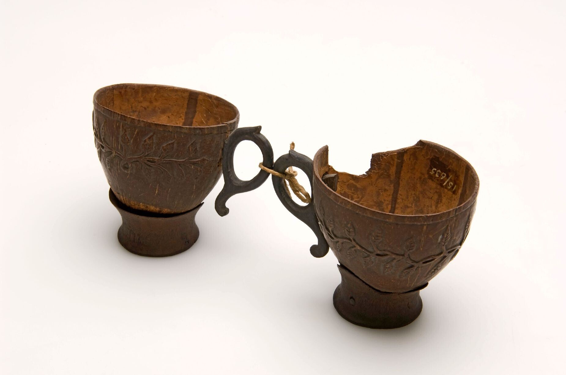 Twee theekoppen van kokosnoot