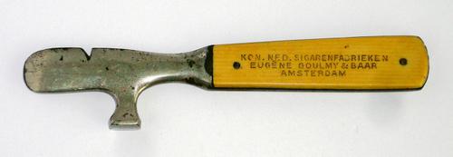 Sigarenkist opener. Opener van metaal met hand gree...