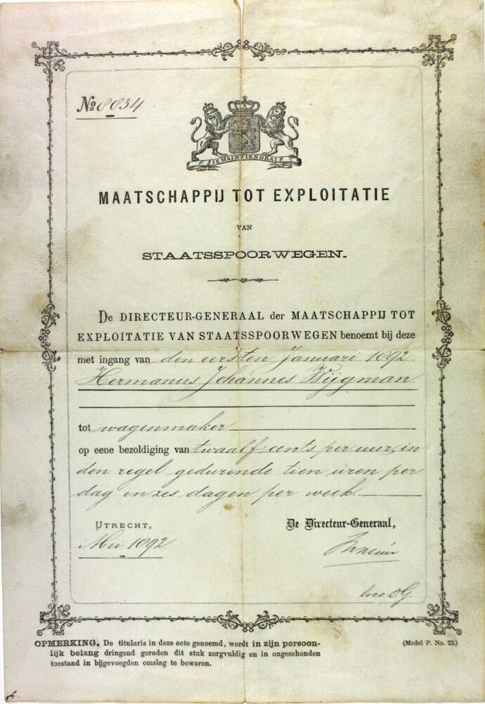 Benoemingsakte van H.J. Wijgman tot wagenmaker.