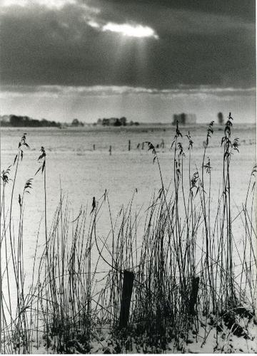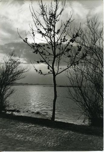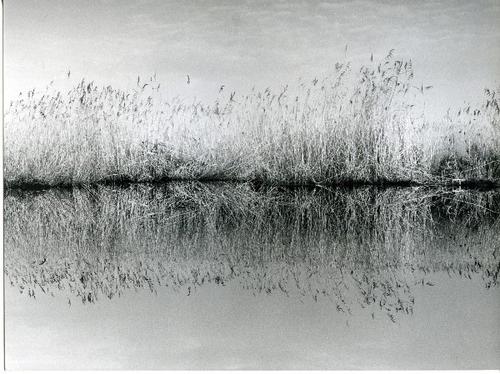 Foto in zwart-wit van beijsde oeverbegroeiing door J...