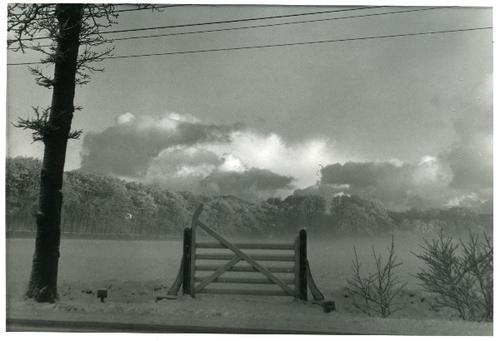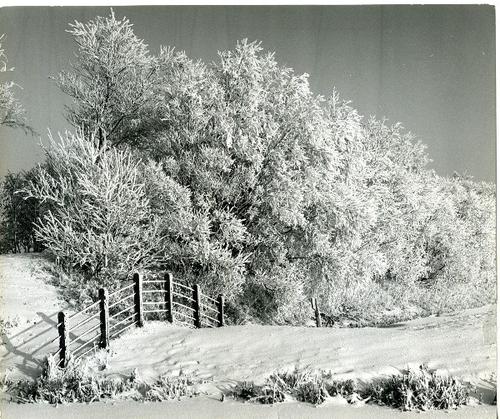 Foto in zwart-wit van berijpte bomen door J.D. de Jo...