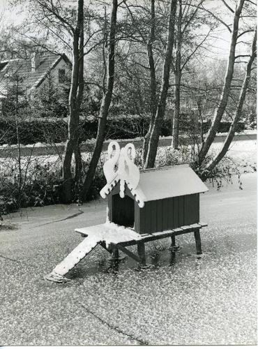 Foto van een eendenhok in een bevroren vaart door Jo...