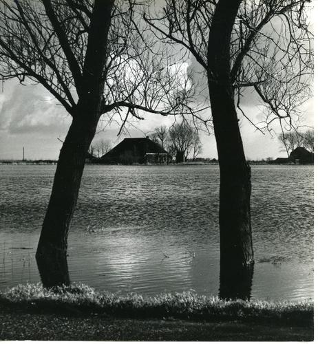 Foto in zwart-wit van een ondergelopen weiland door ...
