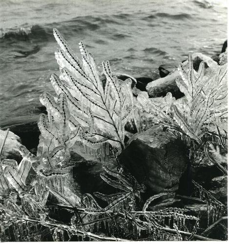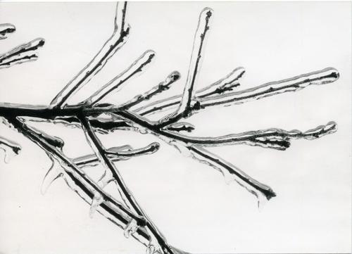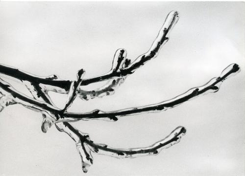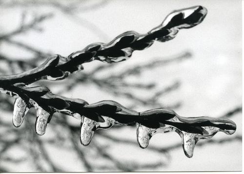 Foto in zwart-wit van een beijzelde tak door Johan W...
