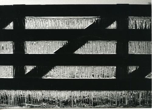 Foto in zwart-wit van een afscheiding met beijzeld p...