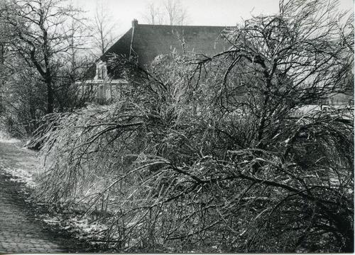Foto in zwart-wit van beijzelde bomen door Johan Wit...