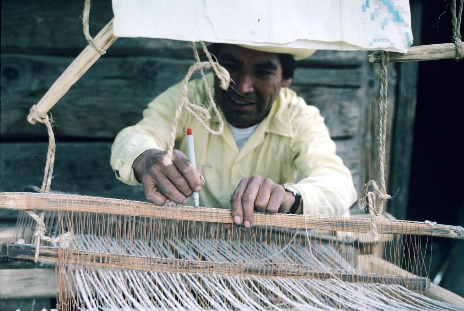wever Filiberto Lazcaro met koloniaal weefgetouw