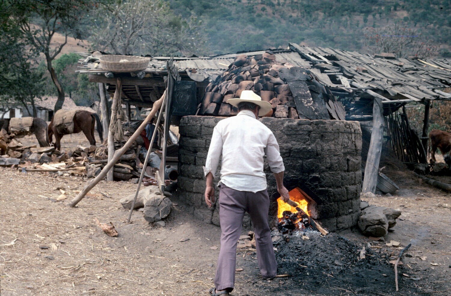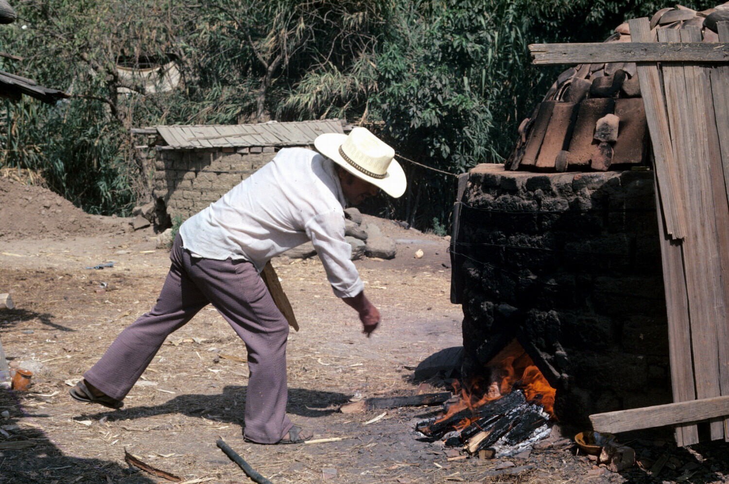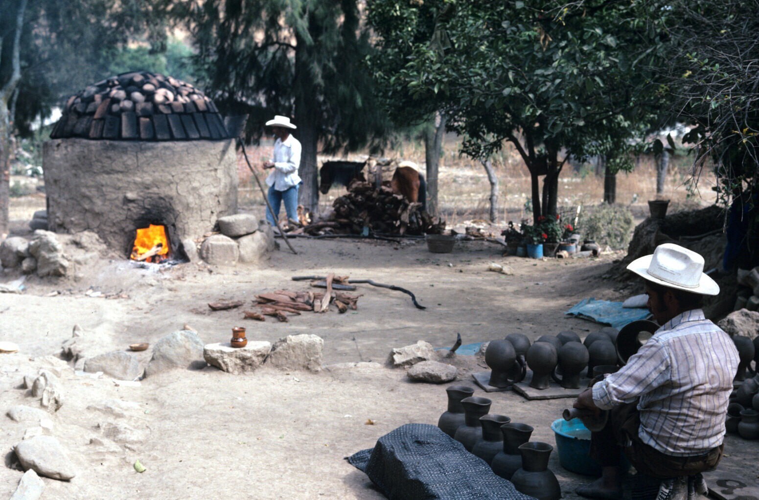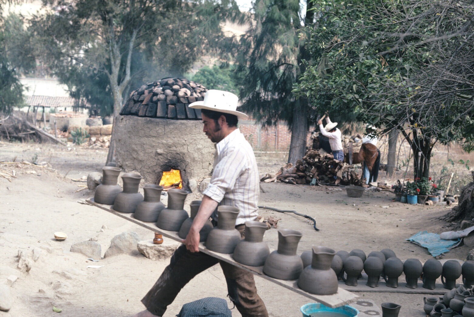 pottenbakker bij oven op erf