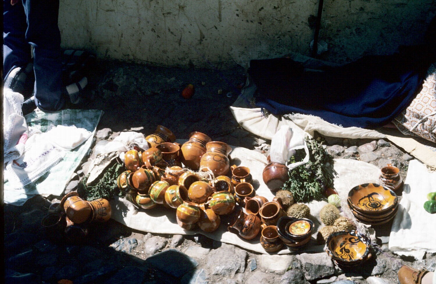aardewerk, o.a. pulquemokken, op markt