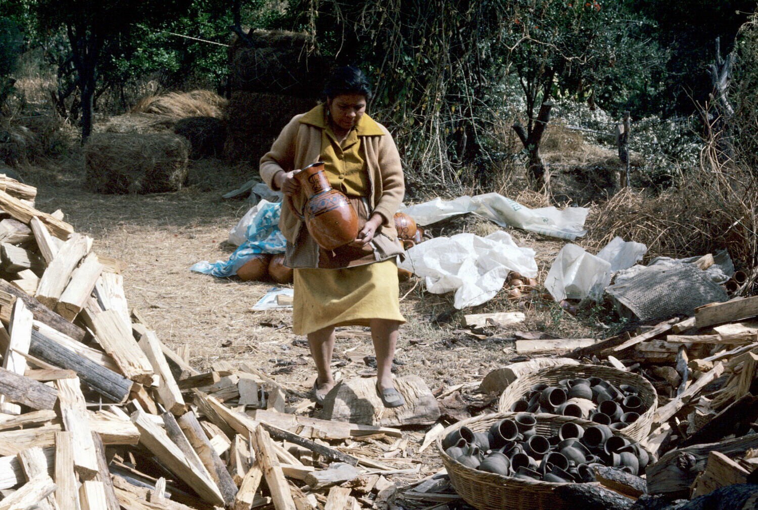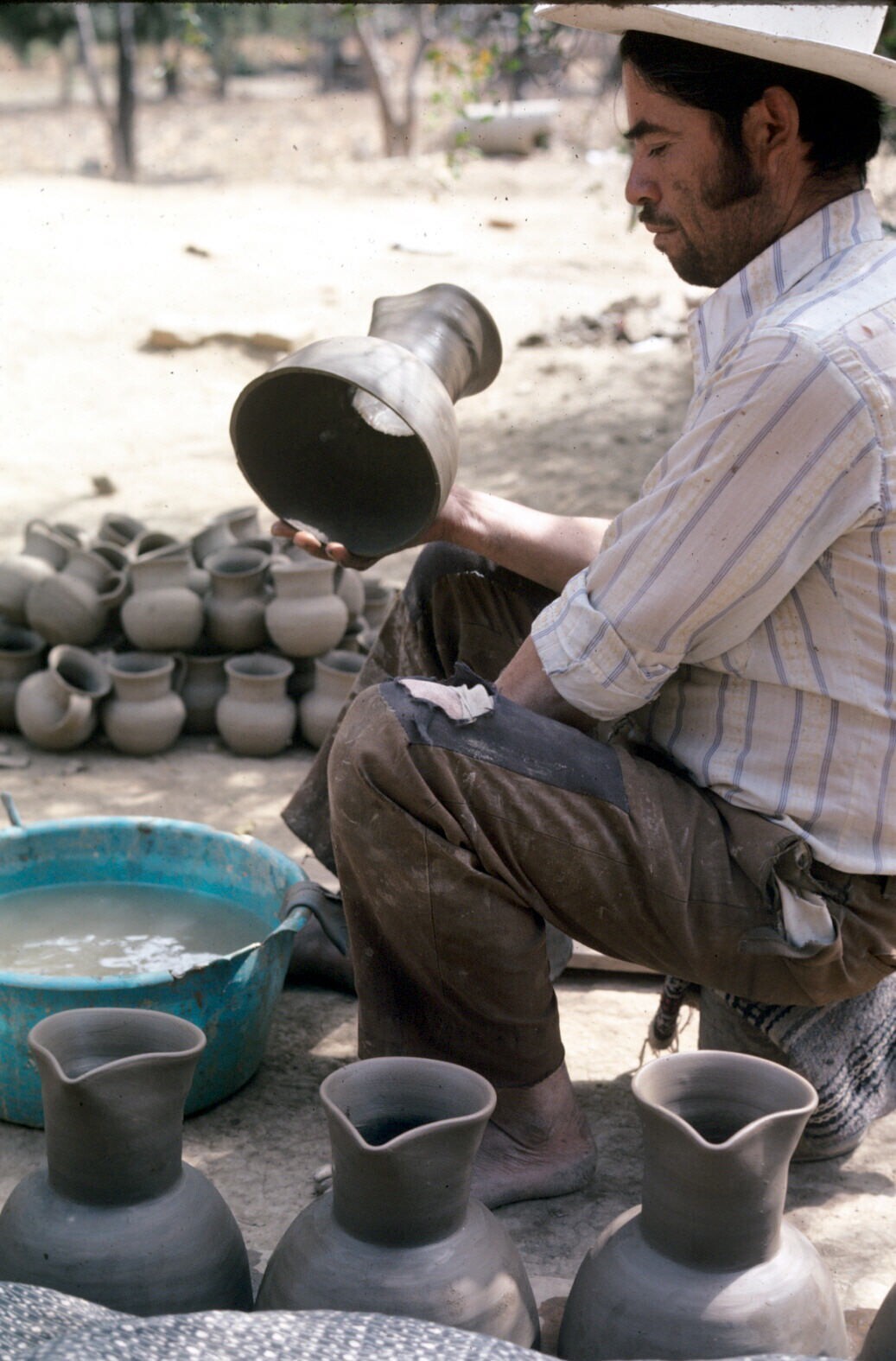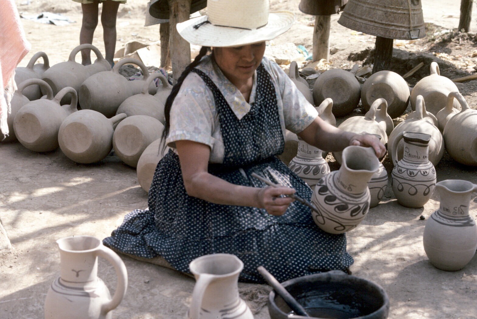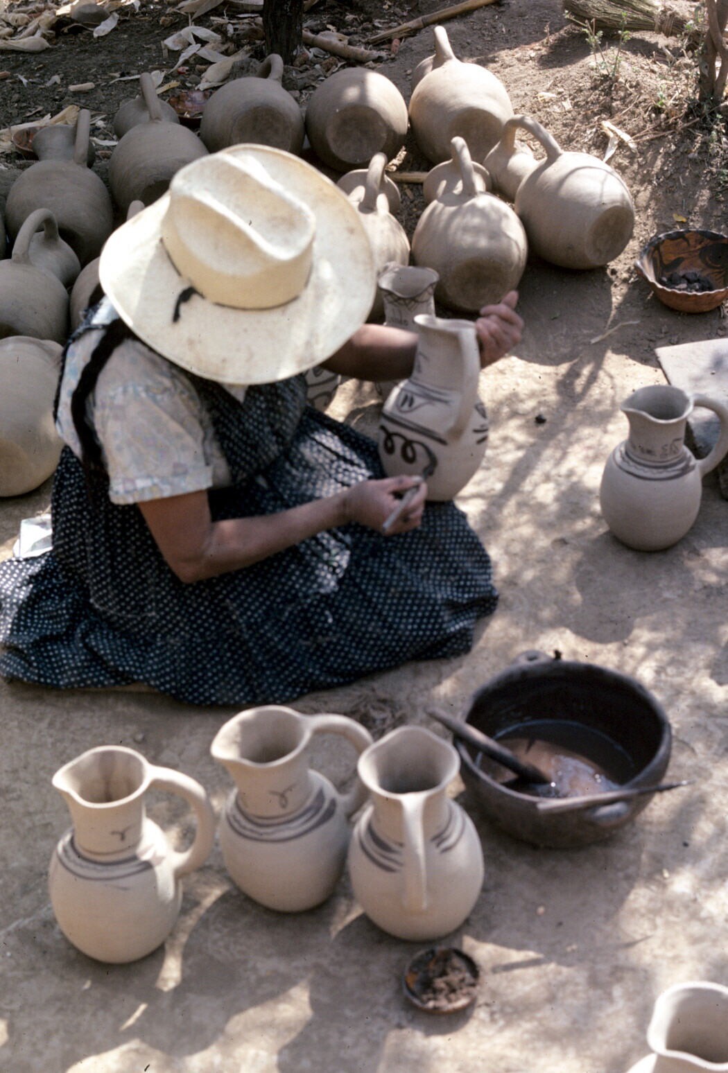 pottenbakkersvrouw met "jarra" (kruik) op erf