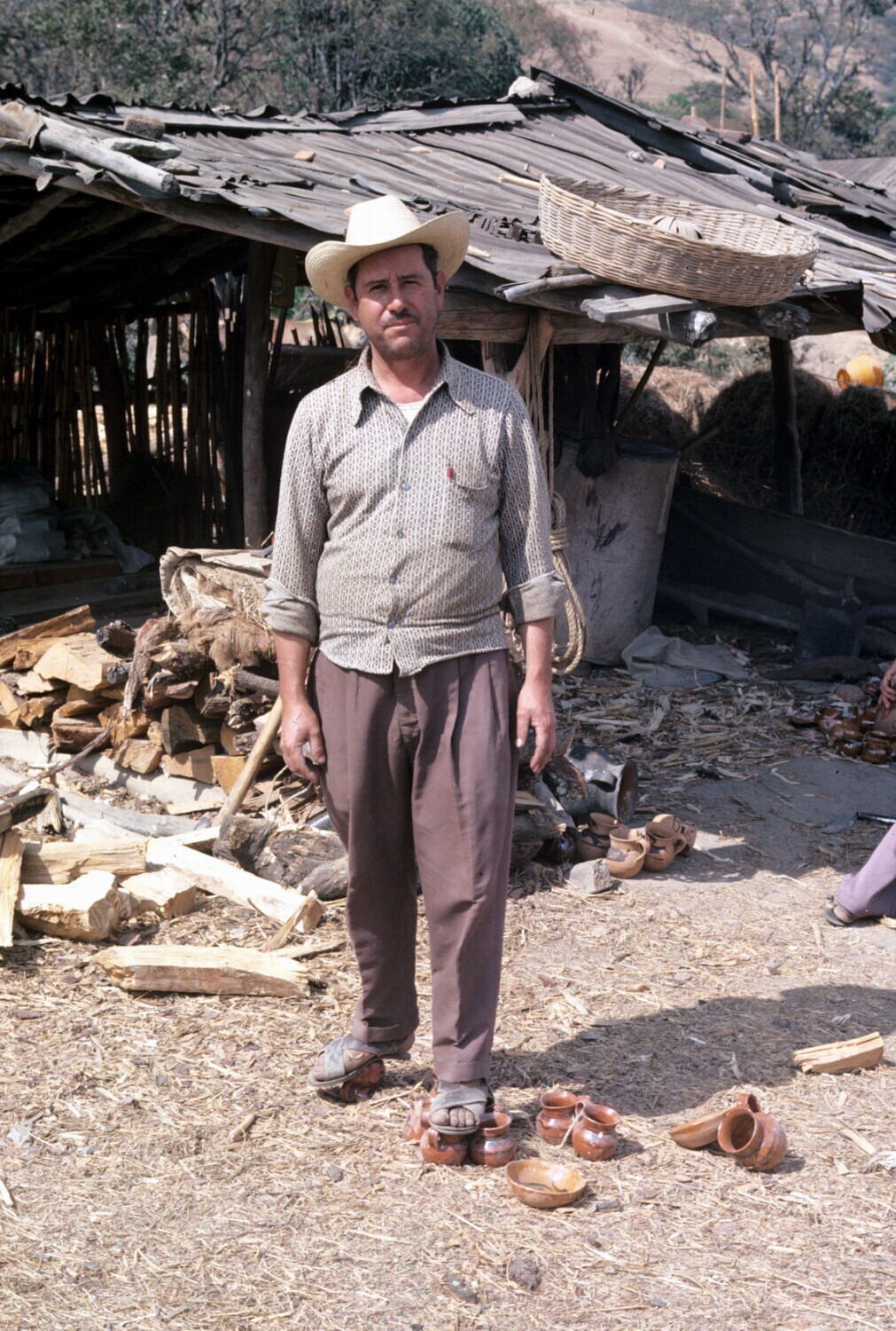 mannen bij pulquestalletje; NB pulquemokken uit Teco...