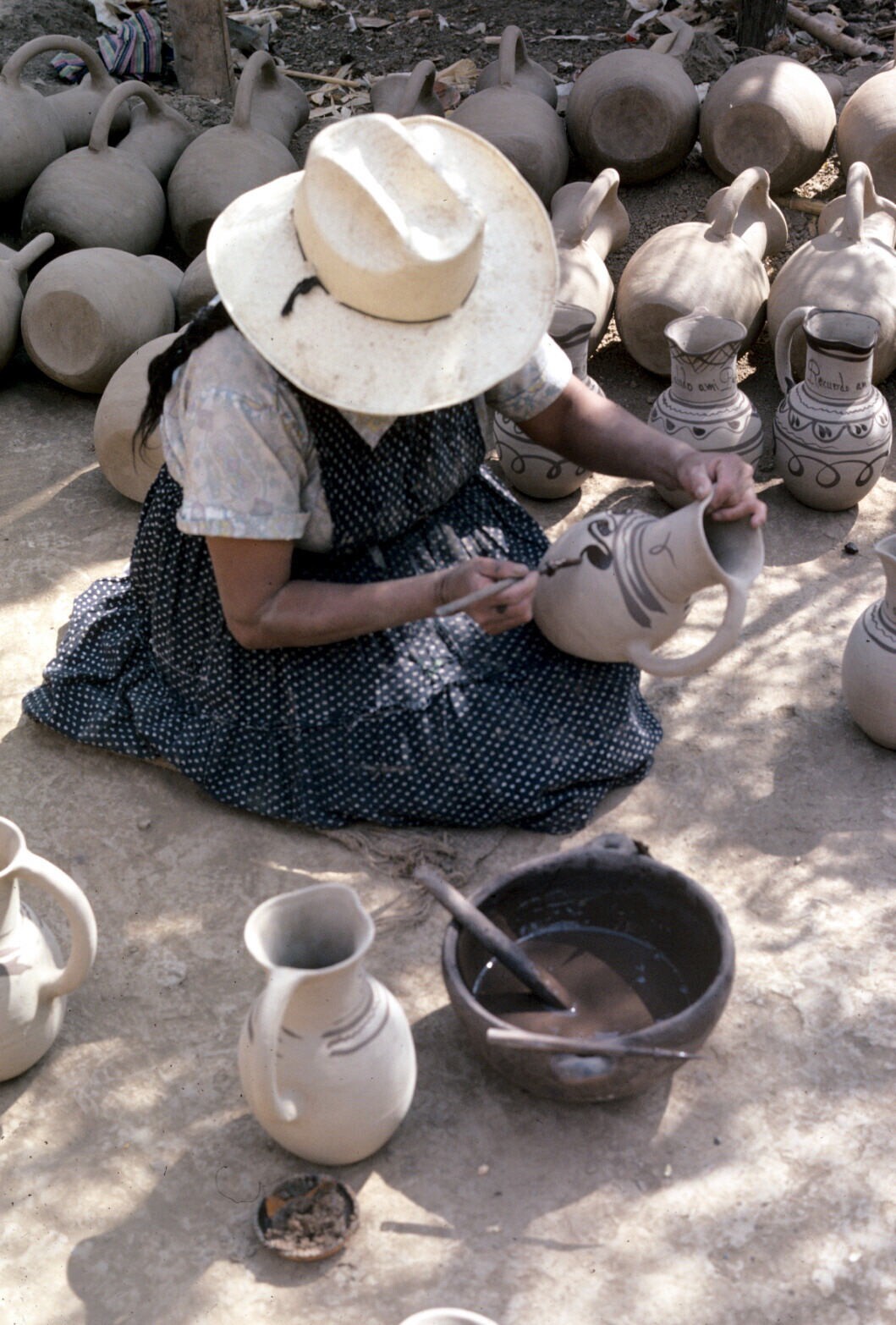 pottenbakkersvrouw, kannen beschilderend