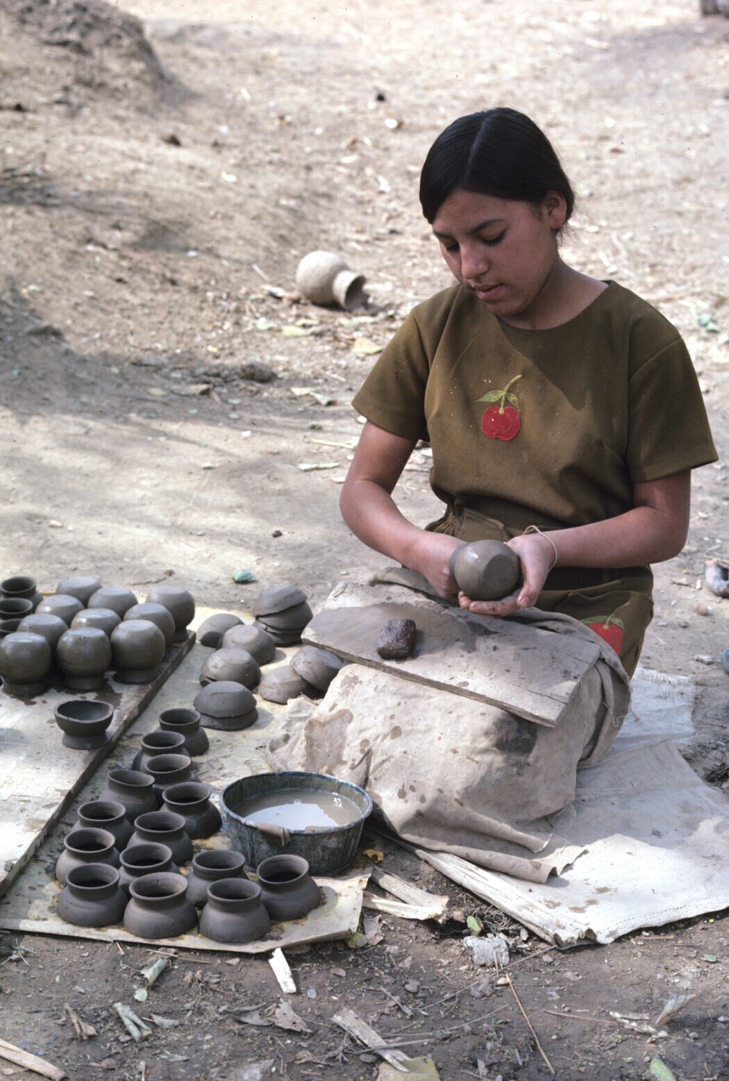 vrouw, aardewerk beschilderend