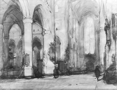 Interieur kerk te Leiden (op vóór- en achterzijde)