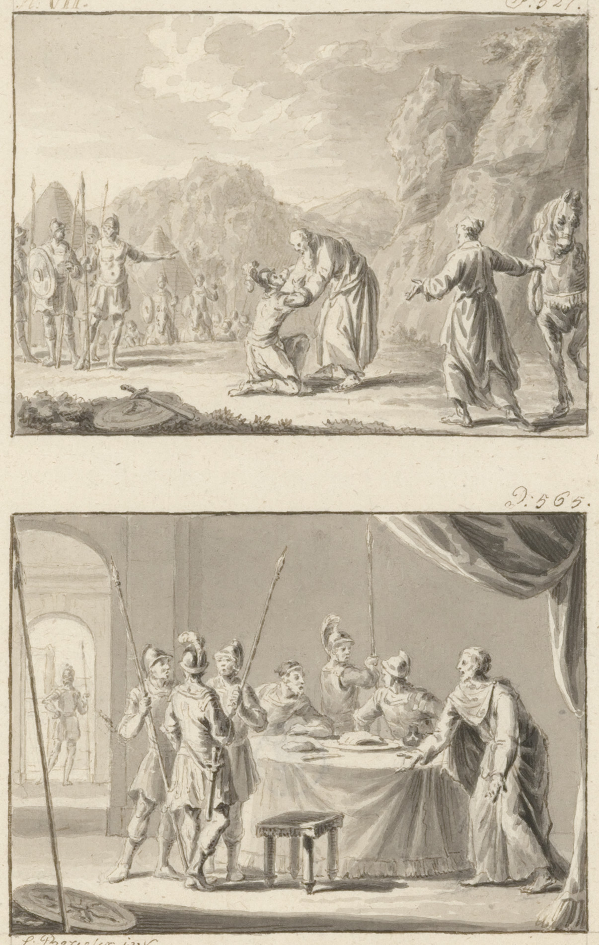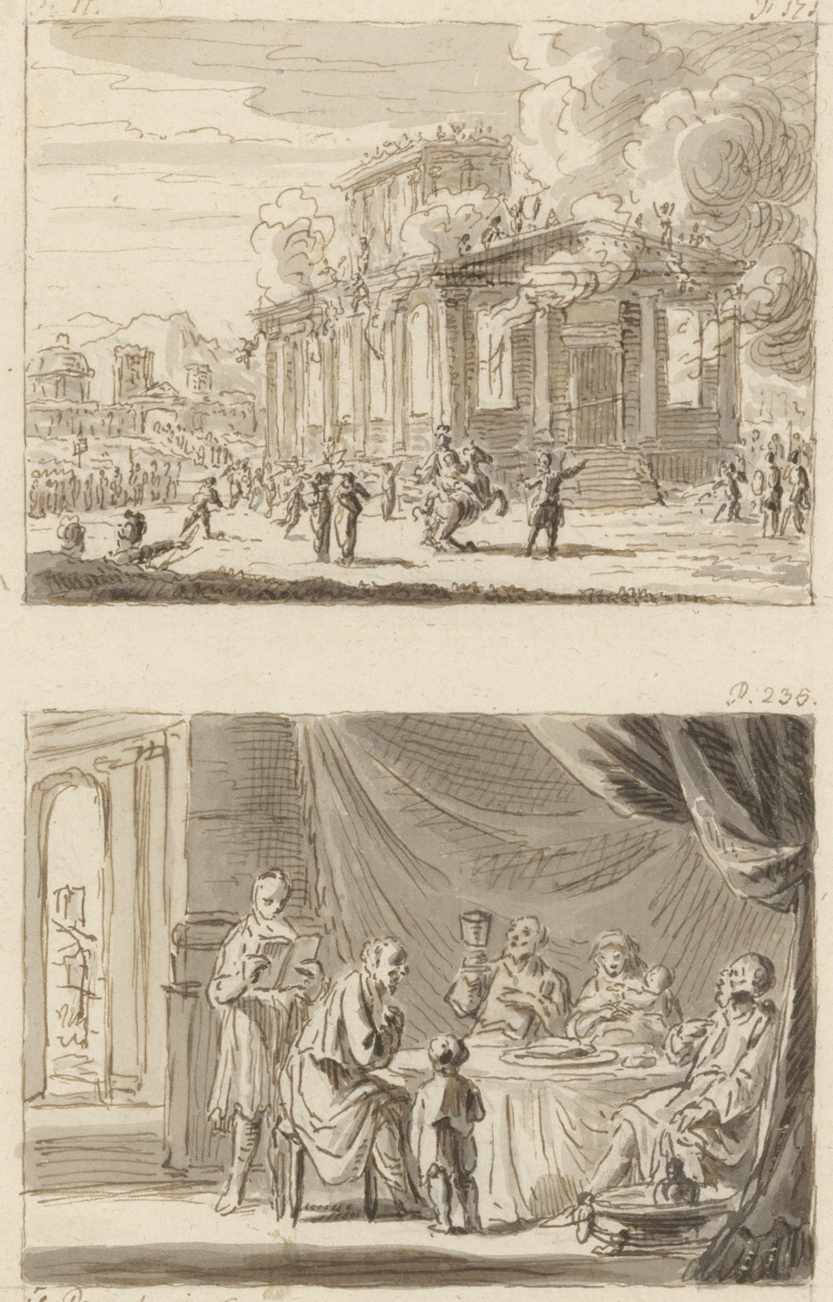 Serie van 16 voorstudies voor prenten, gedeeltelijk ...
