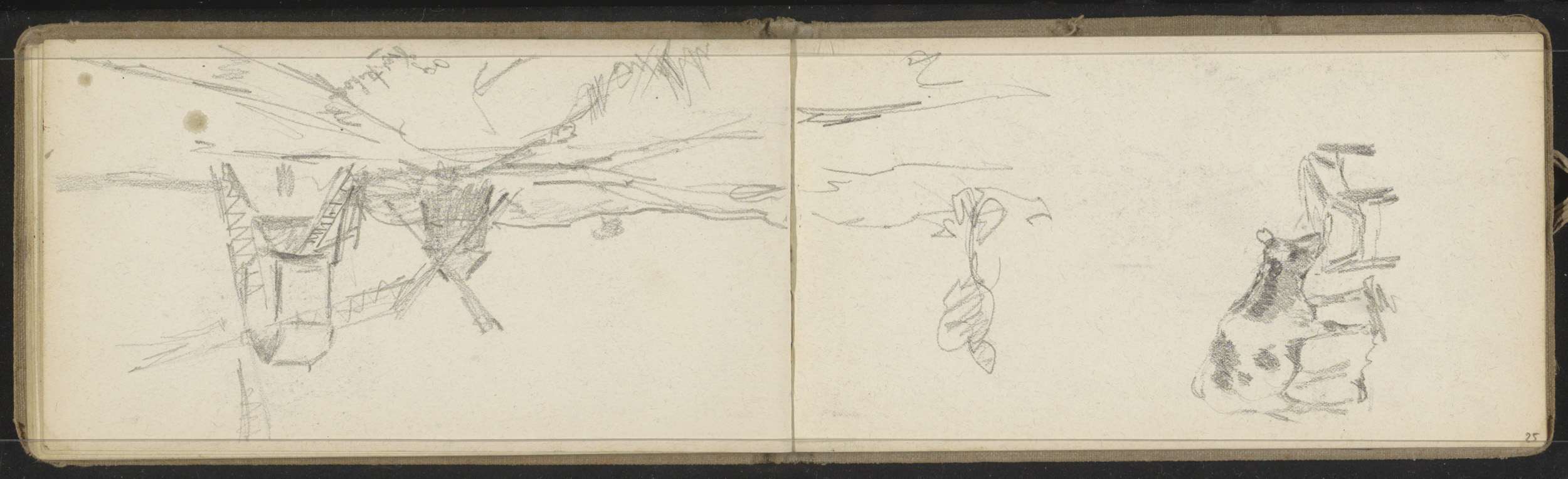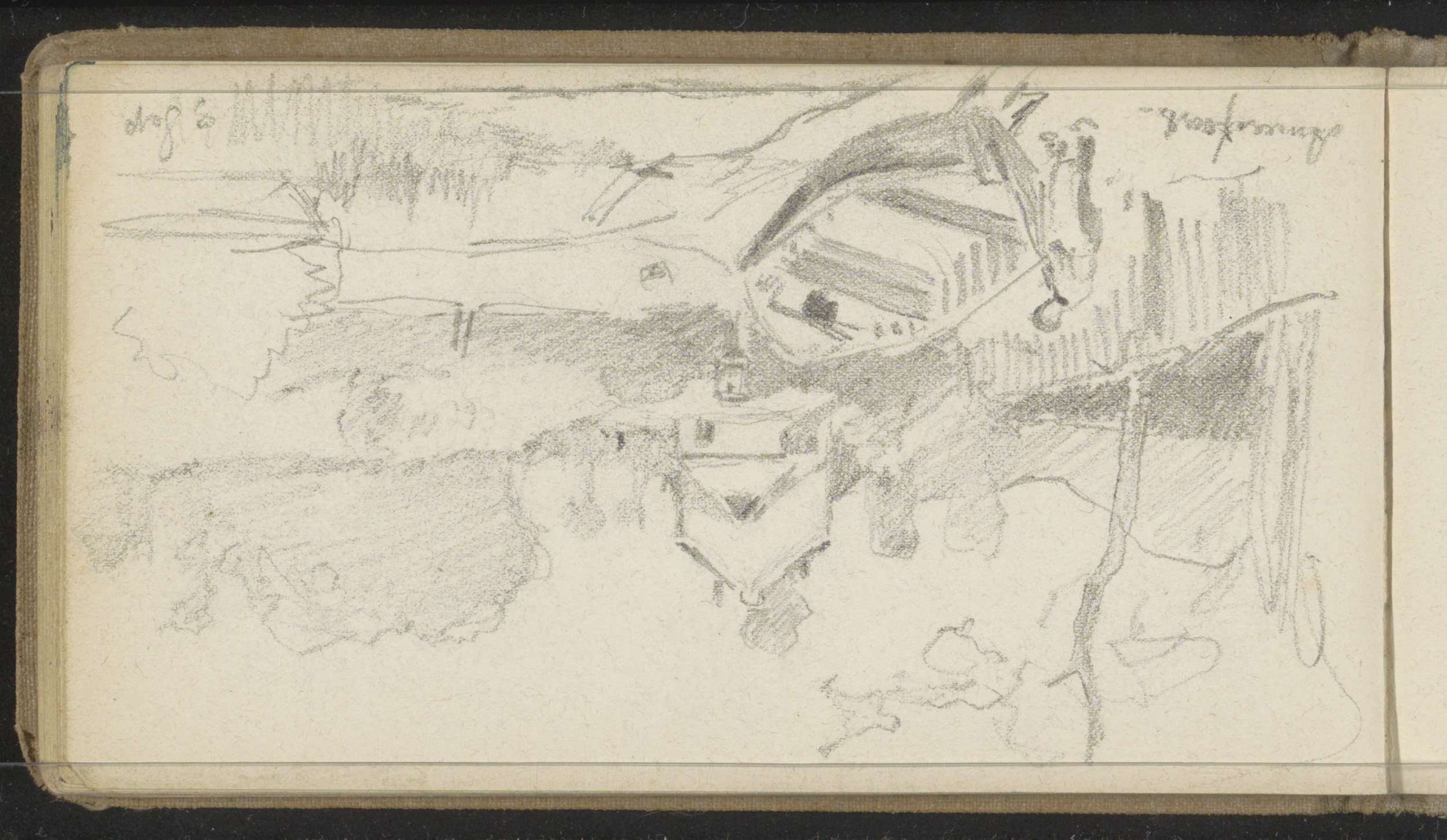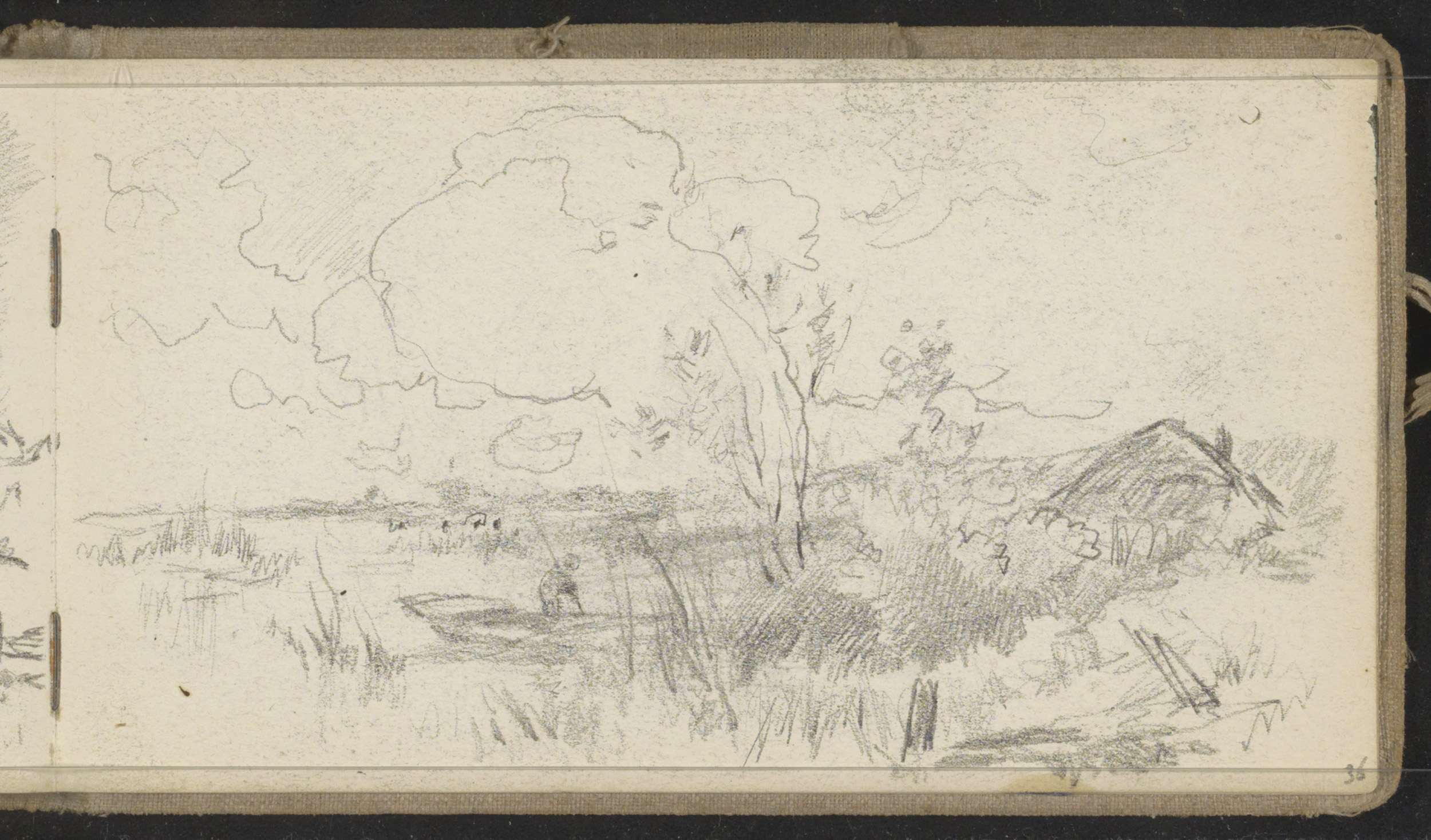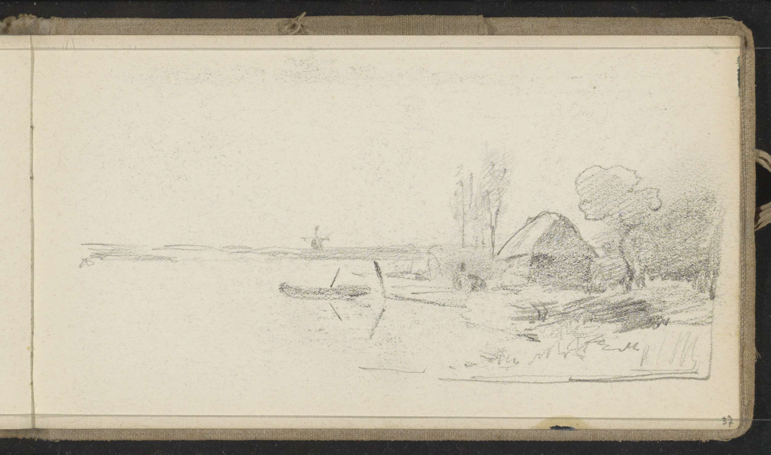 Figuur met een roeiboot aan een waterkant bij Amersf...