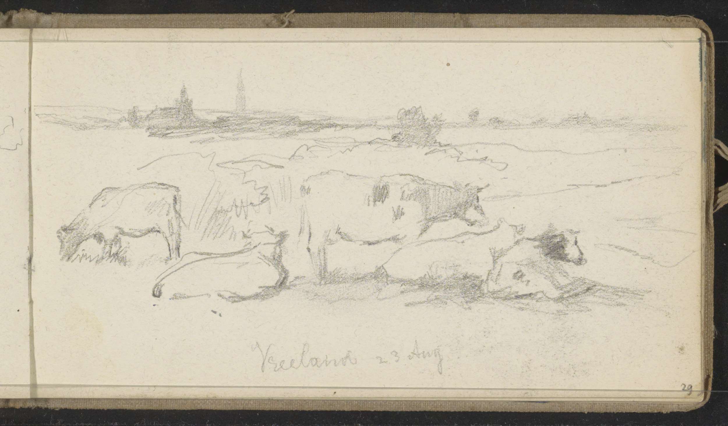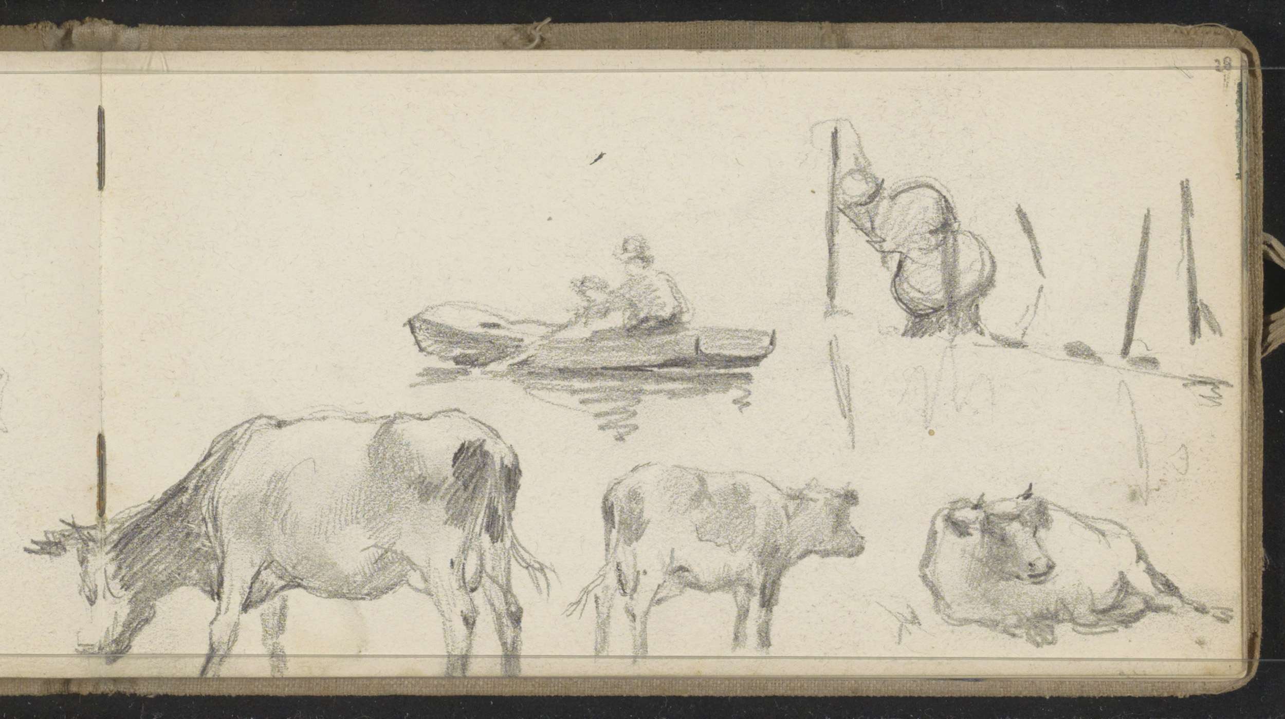 Koeien en een figuur in een roeiboot
