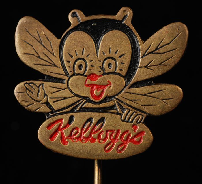 Metalen speld met geanimeerde bij en "Kellogg´s"