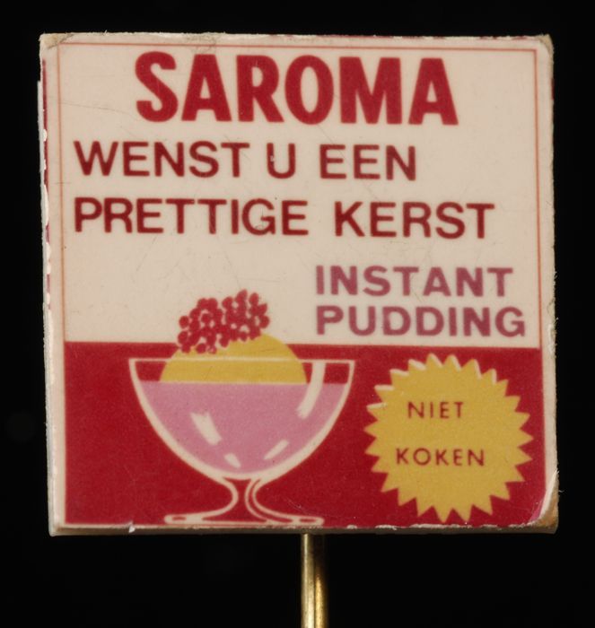 Speld met toetje en "Saroma wenst u een prettige kerst"