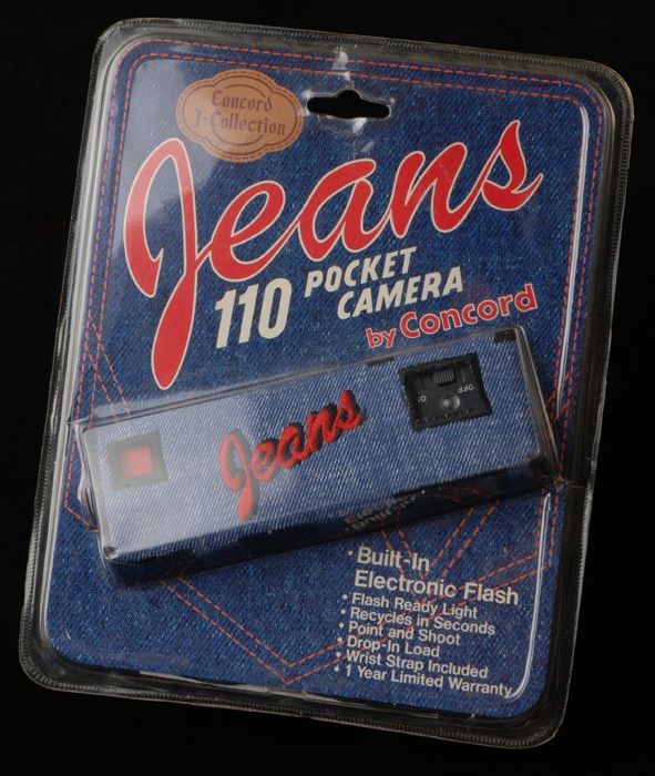 Fotocamera met jeansbekleding in verpakking