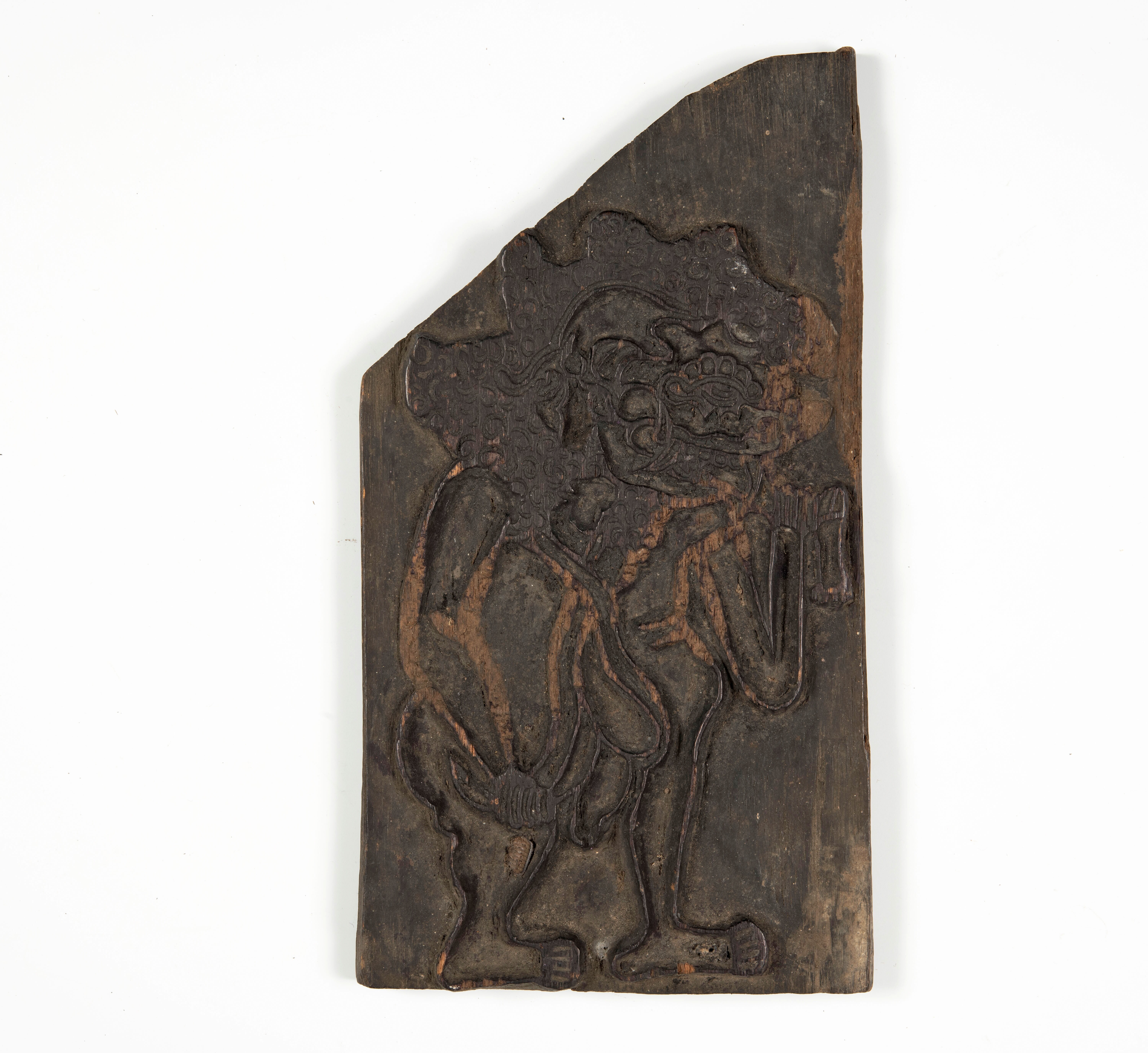 Houten cliché voor het drukken van een wajangfiguur ...