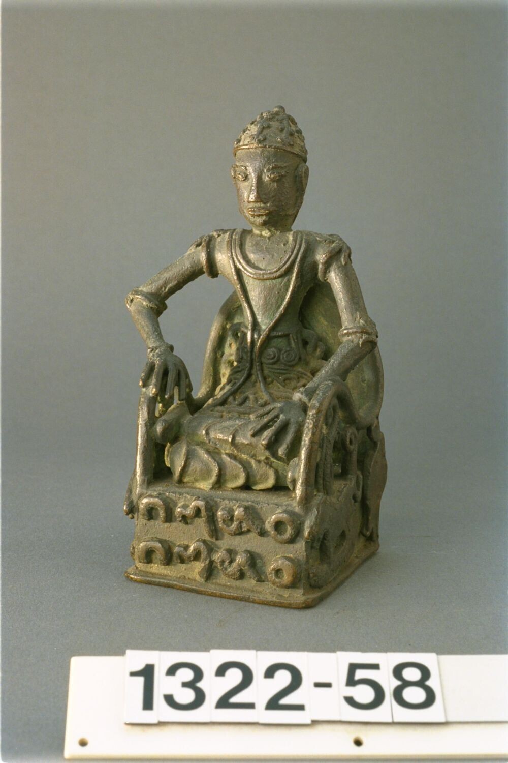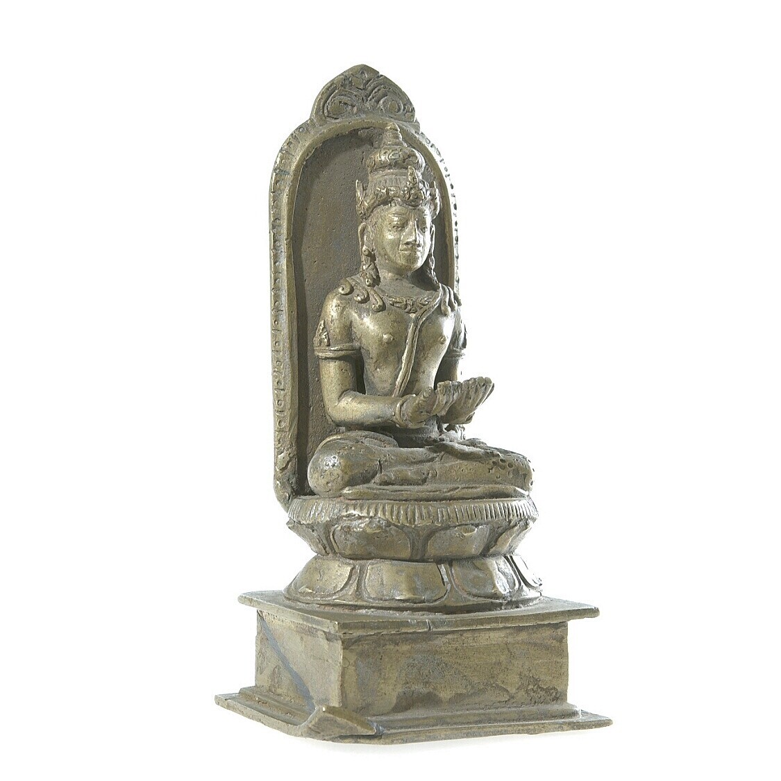 Bronzen heilige figuur op een lotustroon