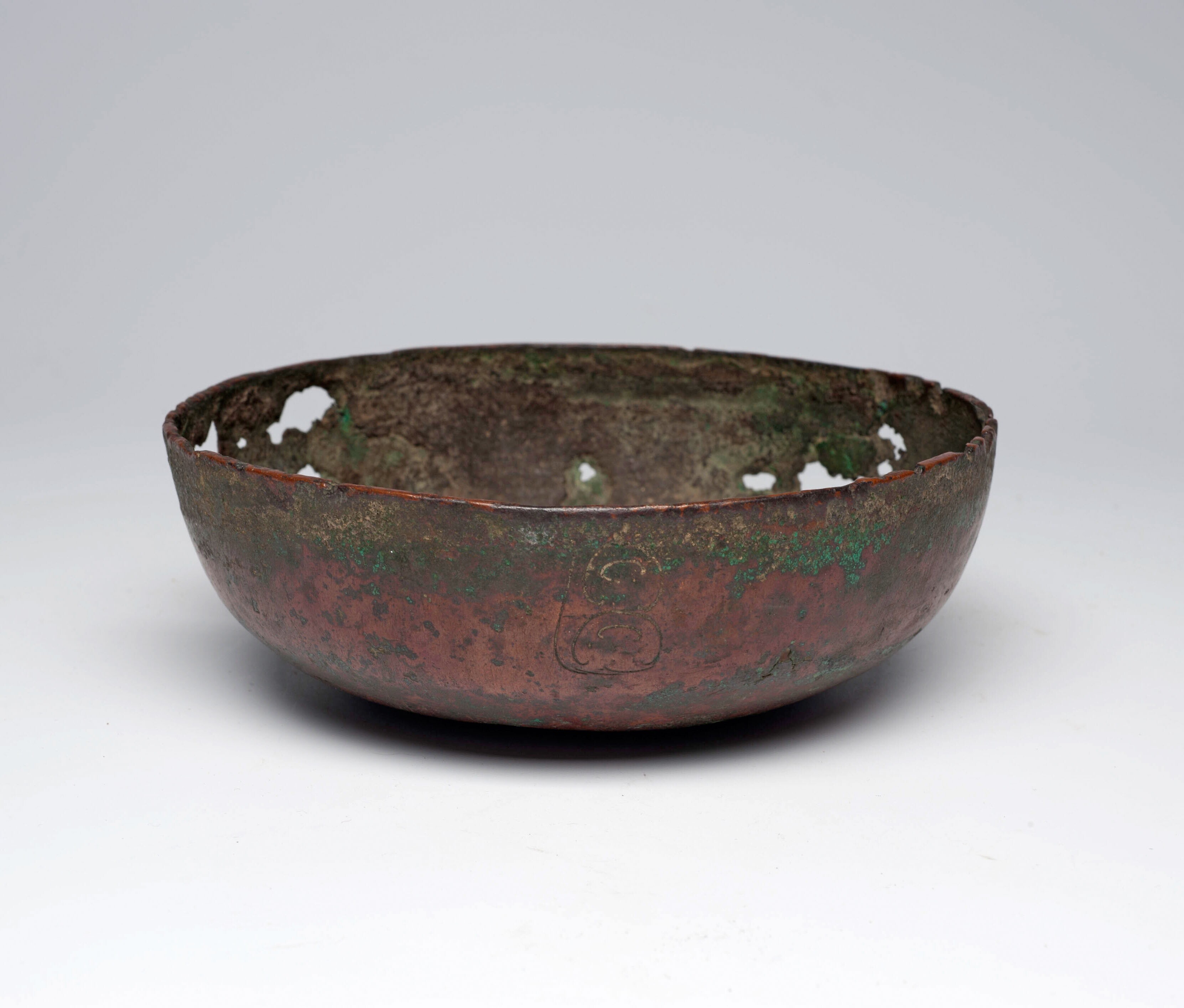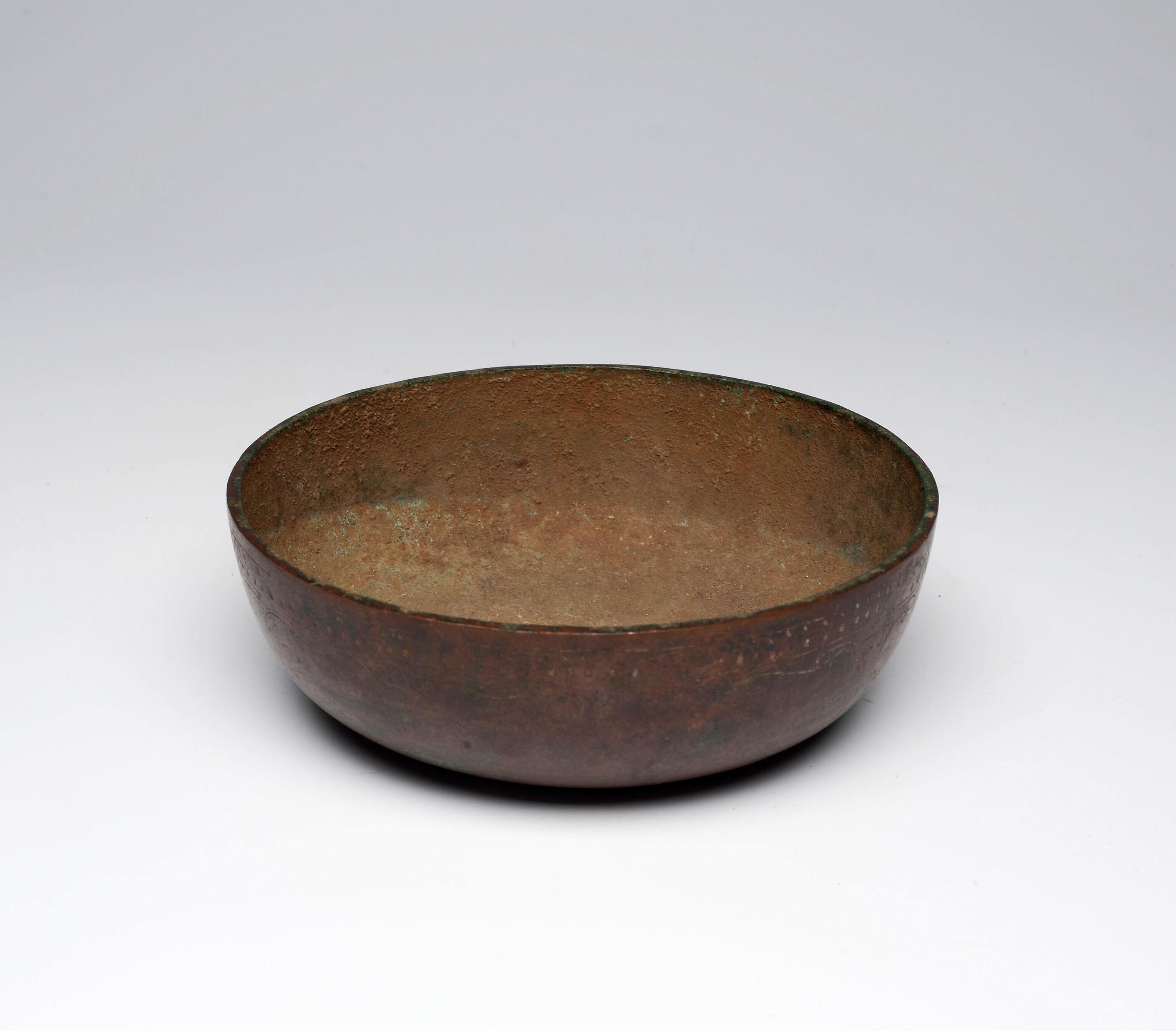 Bronzen schaal met ingegraveerde versieringen