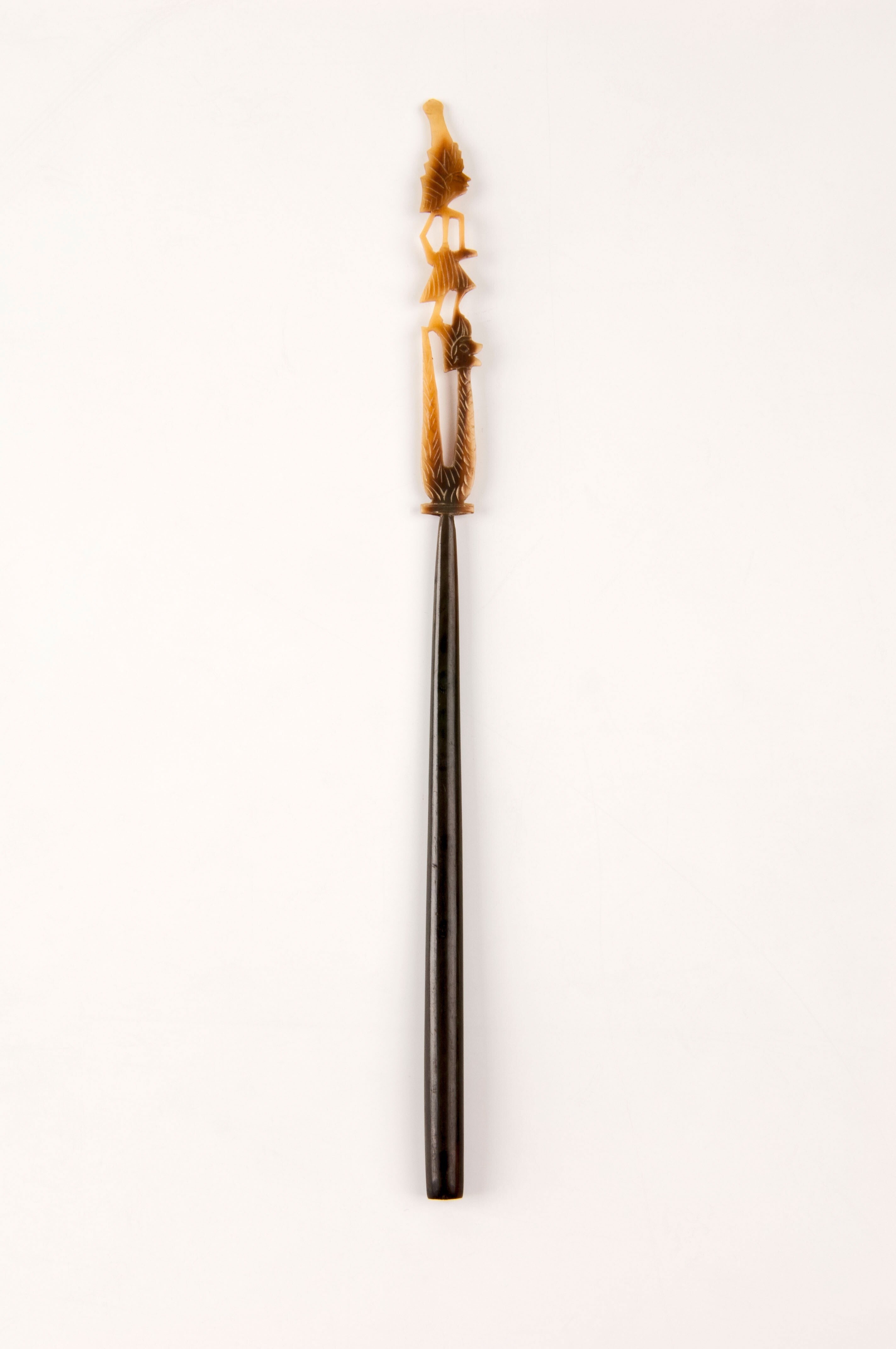 Hoornen pennenhouder met een topstuk in de vorm van ...
