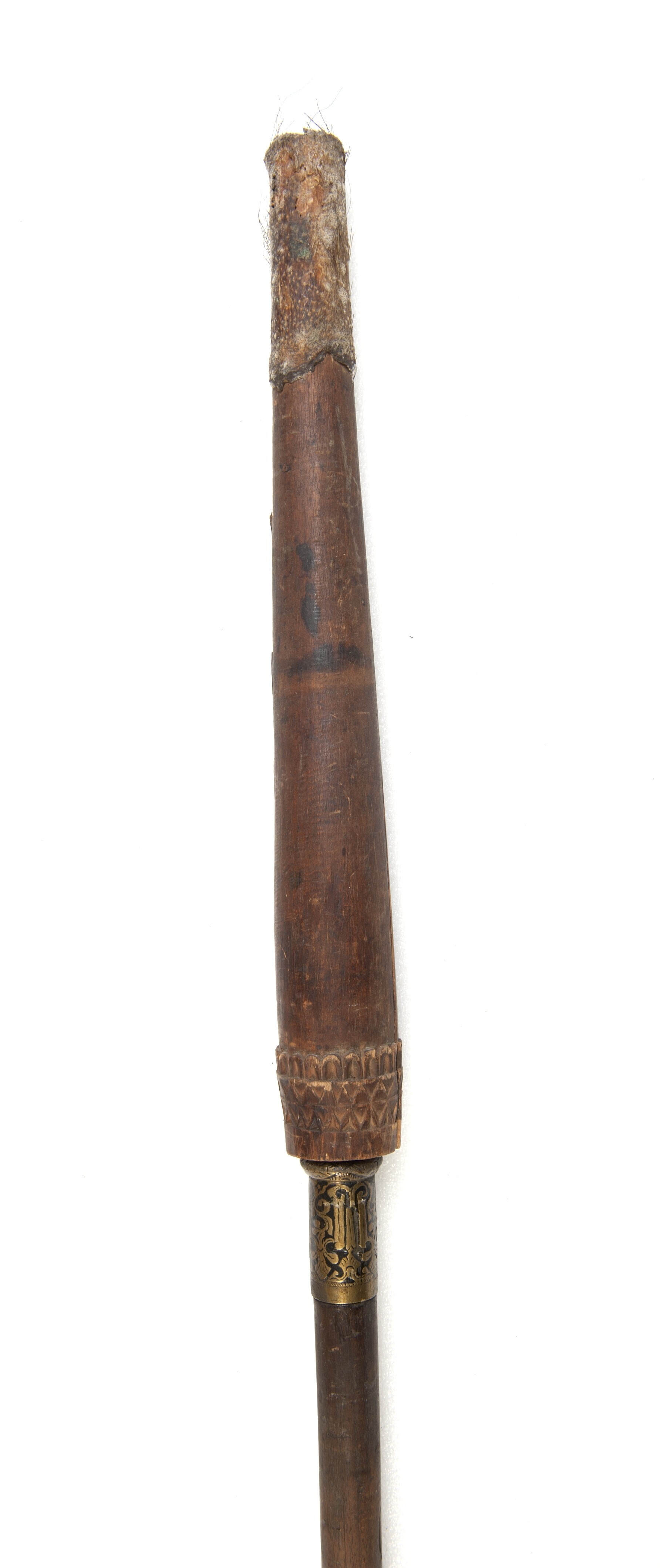 Lans met ijzeren punt en houten schacht en schede vo...