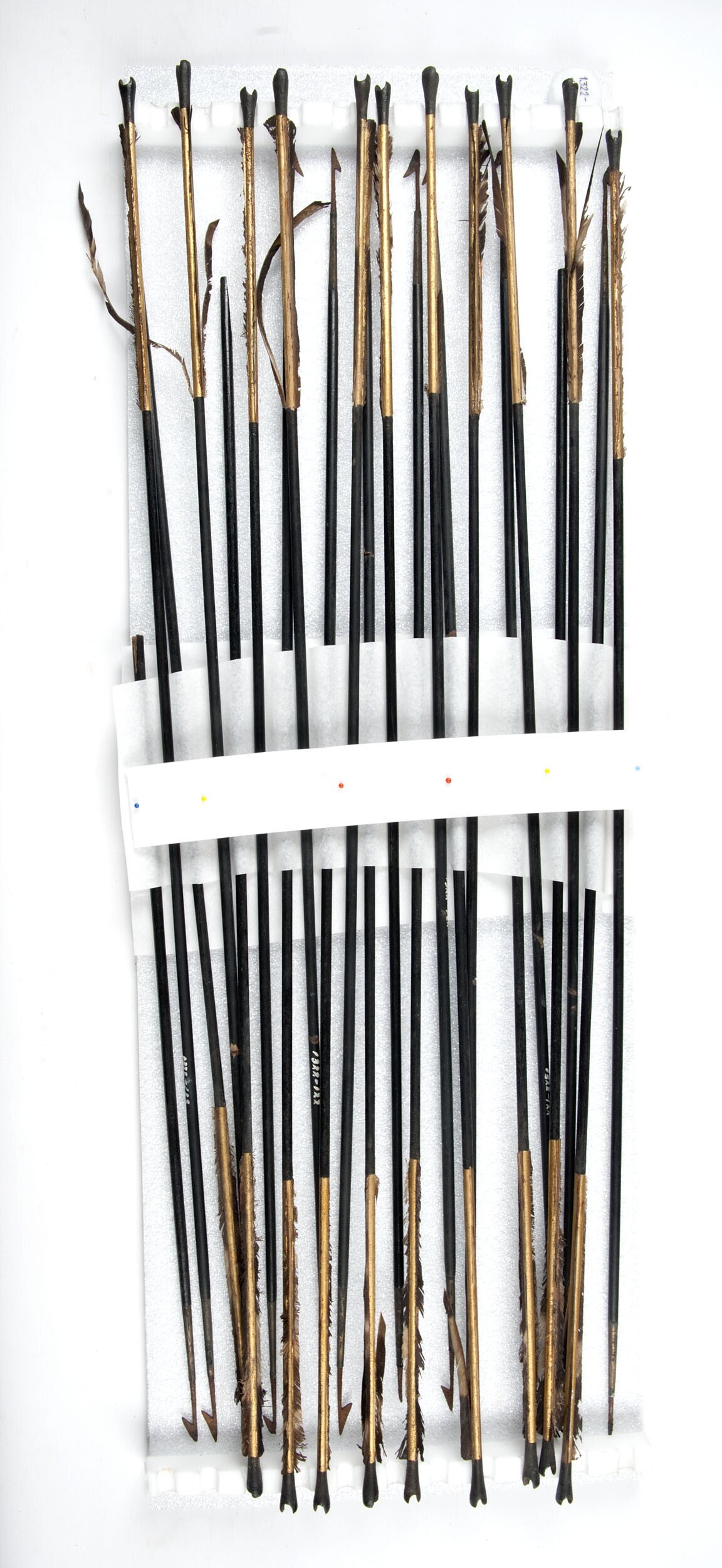 Leren pijlkoker met draagband en een bundel pijlen