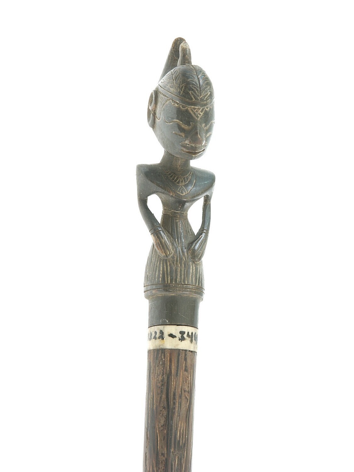 Houten wandelstok met hoornen wajangknop