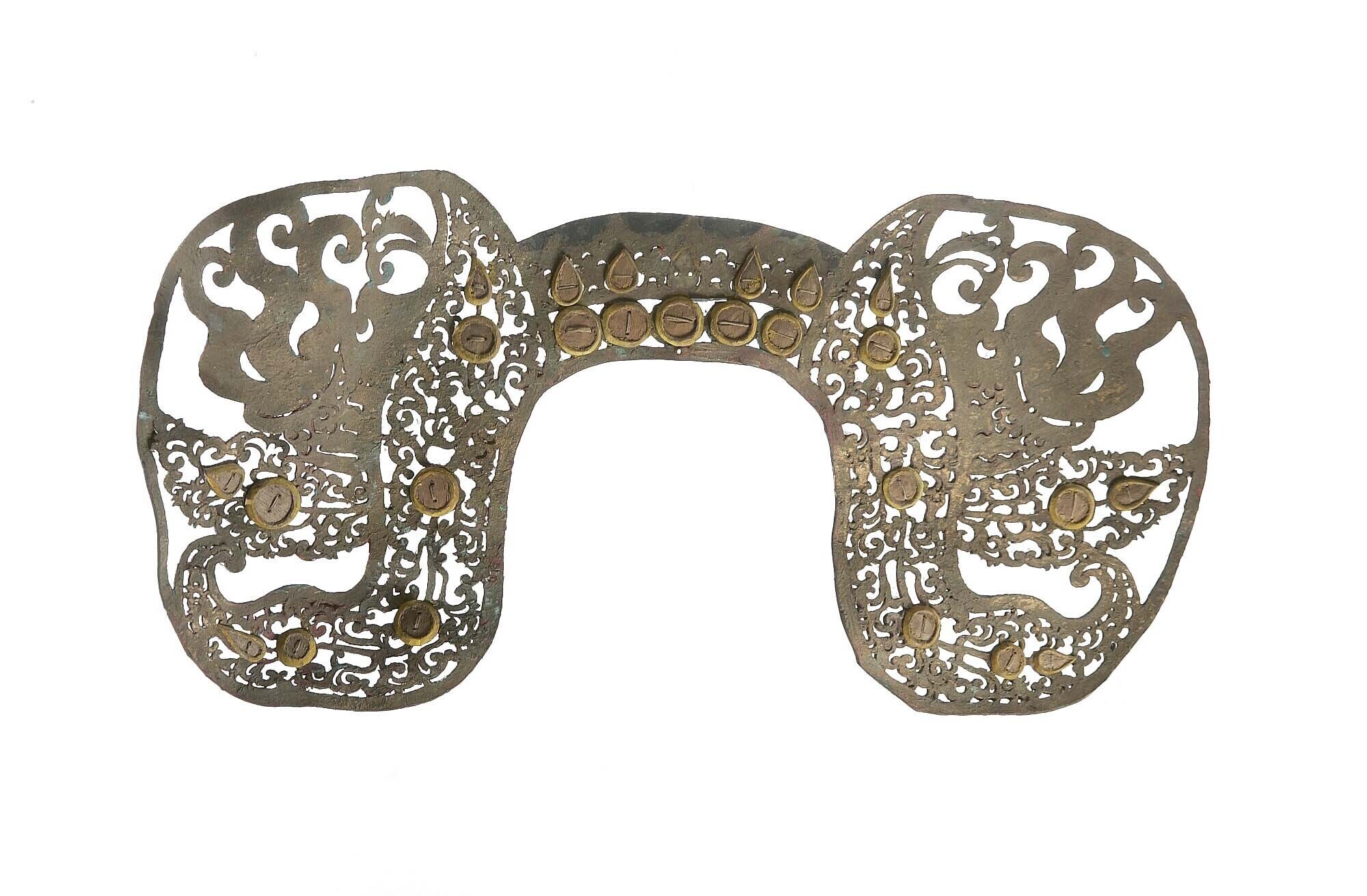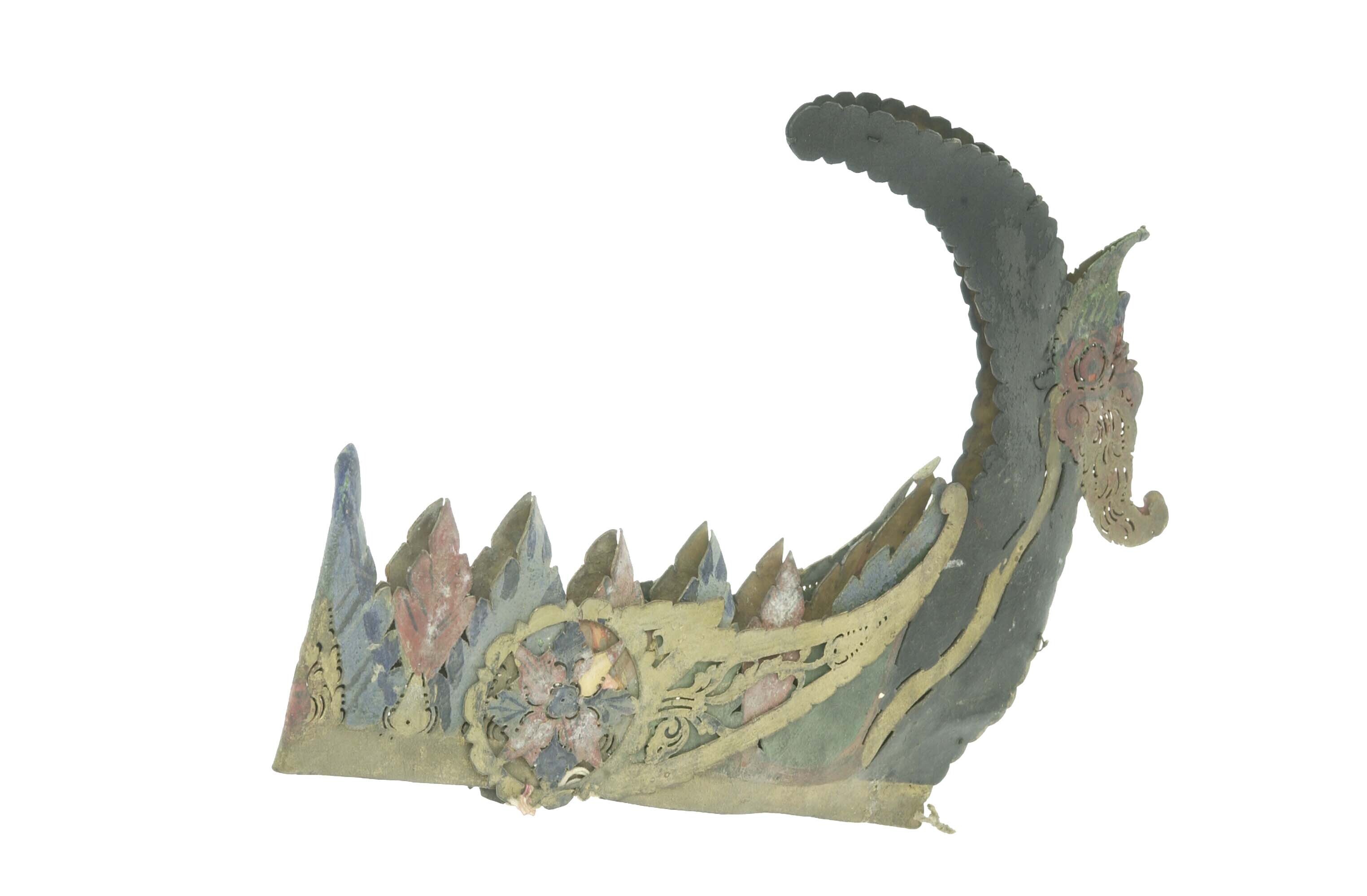 Diadeem van opengewerkt verguld leer, behoort tot de...
