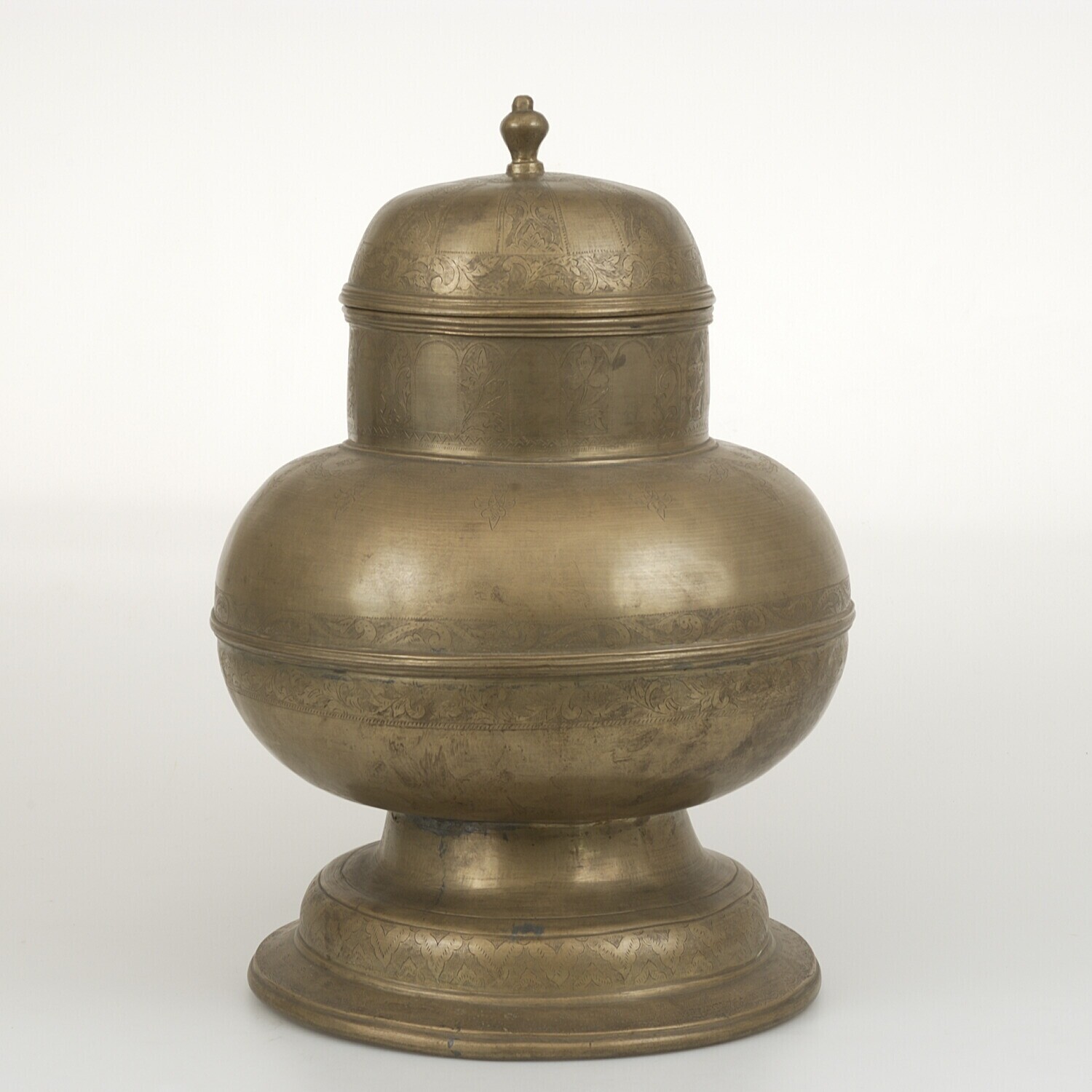 Bronzen pot op een voetstuk, de deksel ontbreekt
