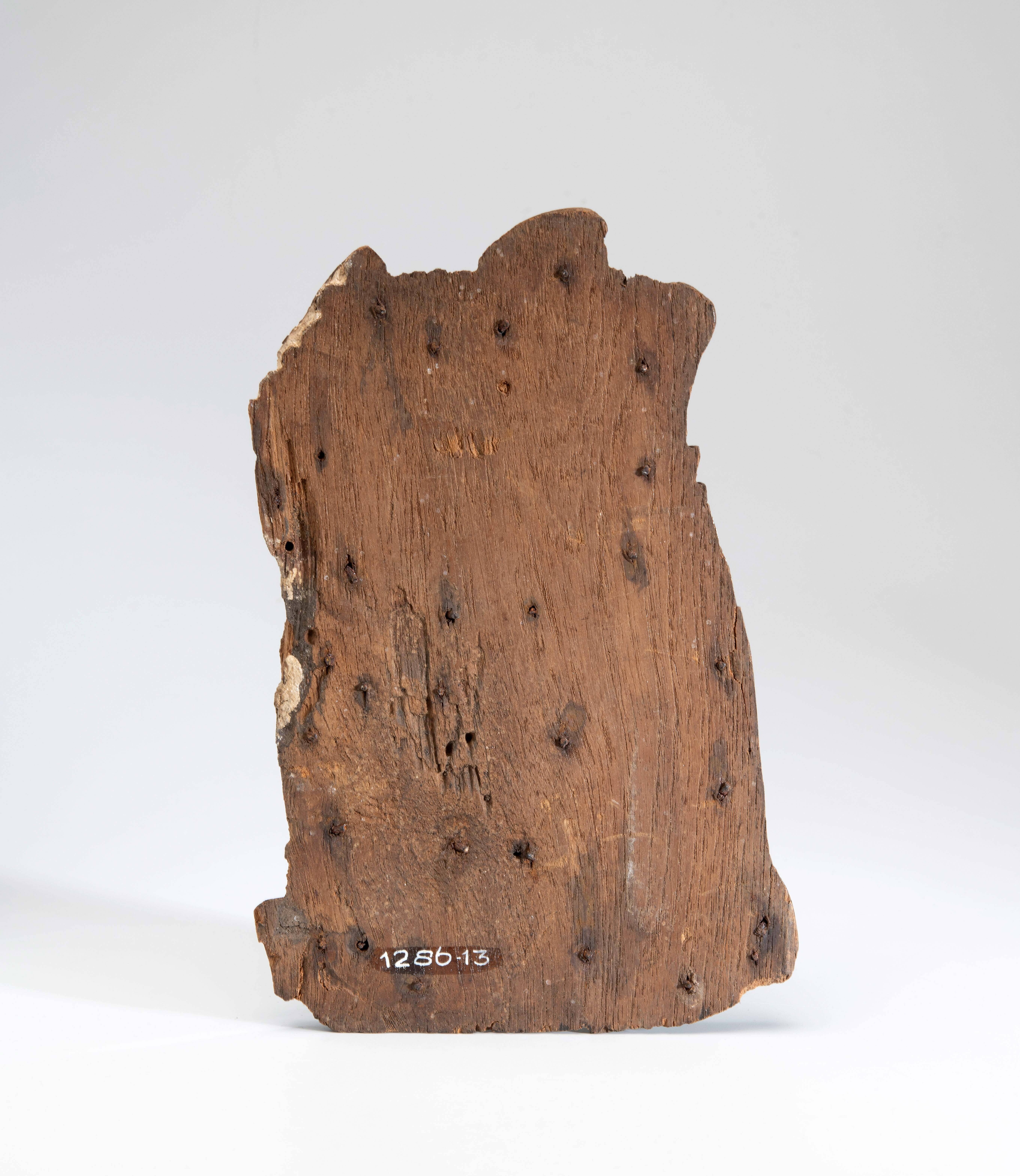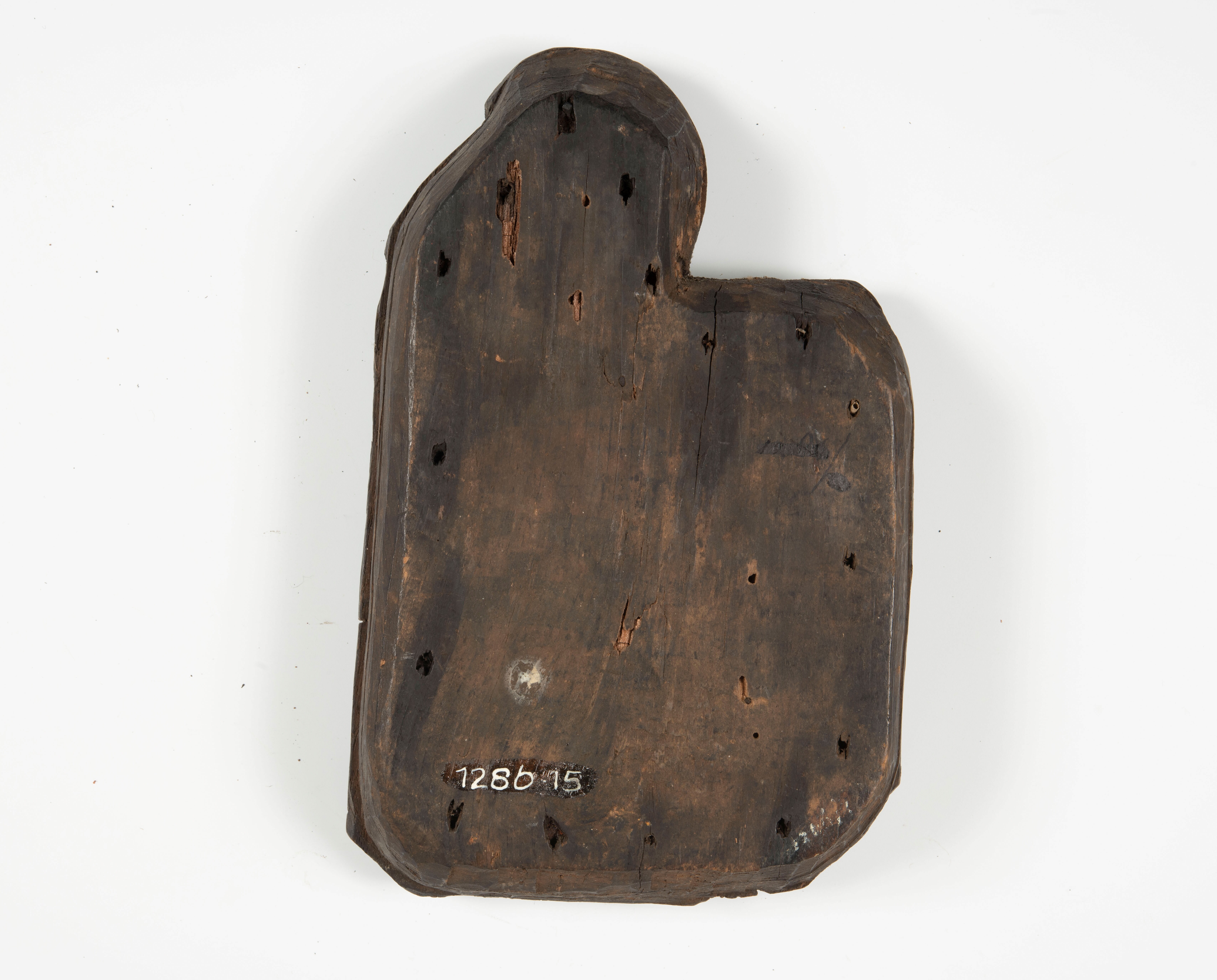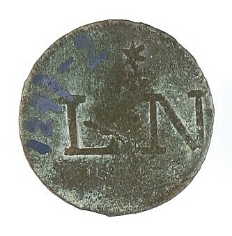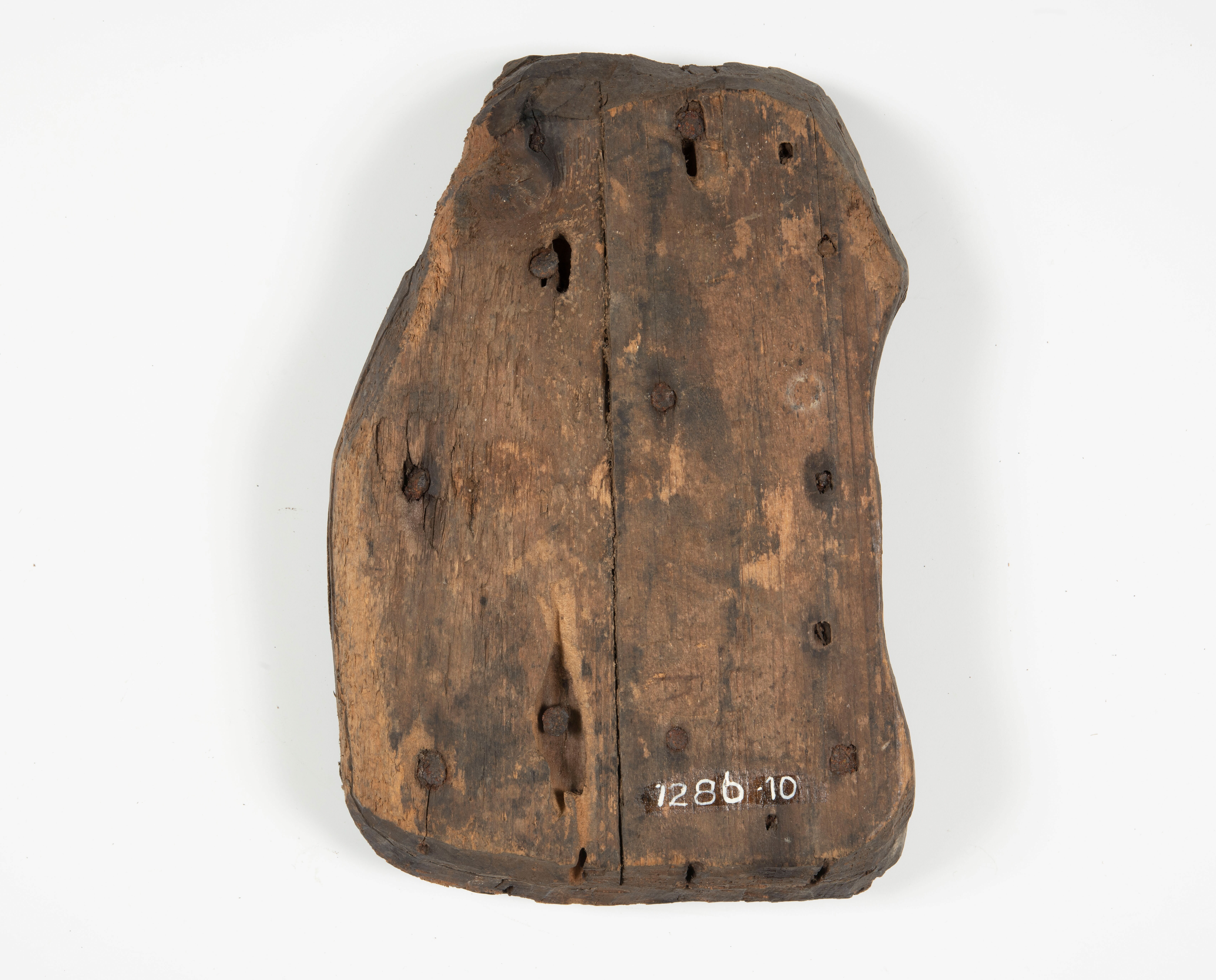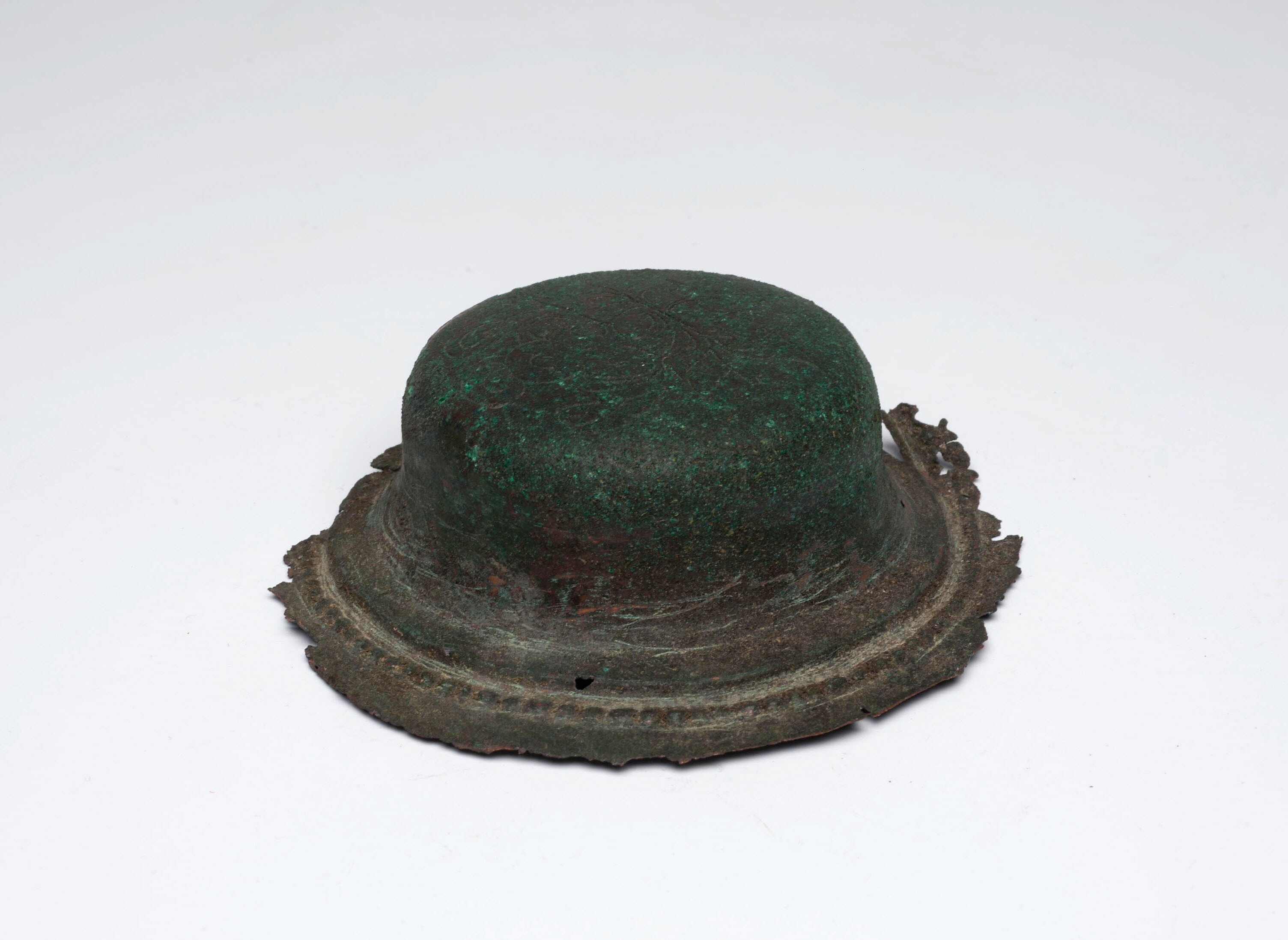 Ovaal bronzen plaatje met een ronde deuk in het midden