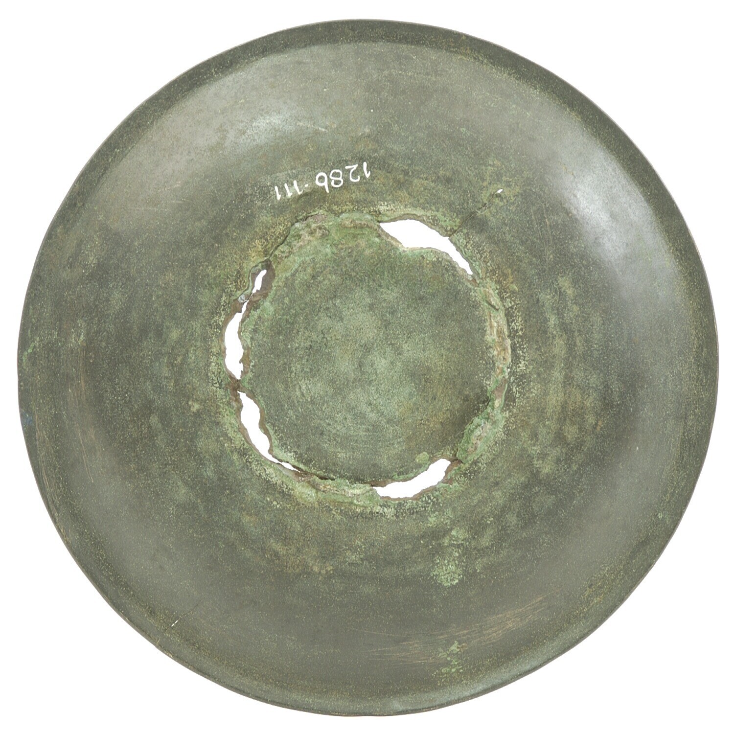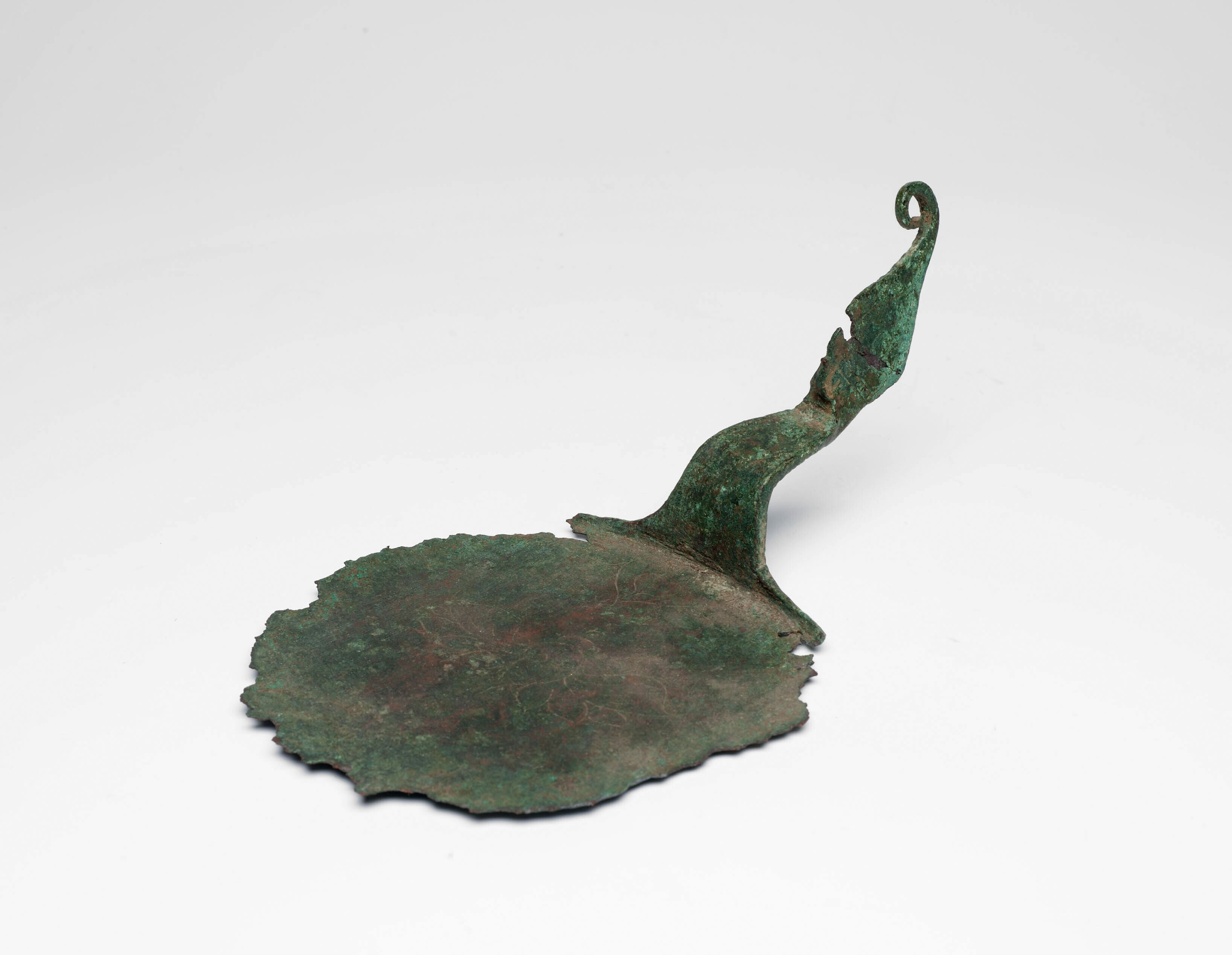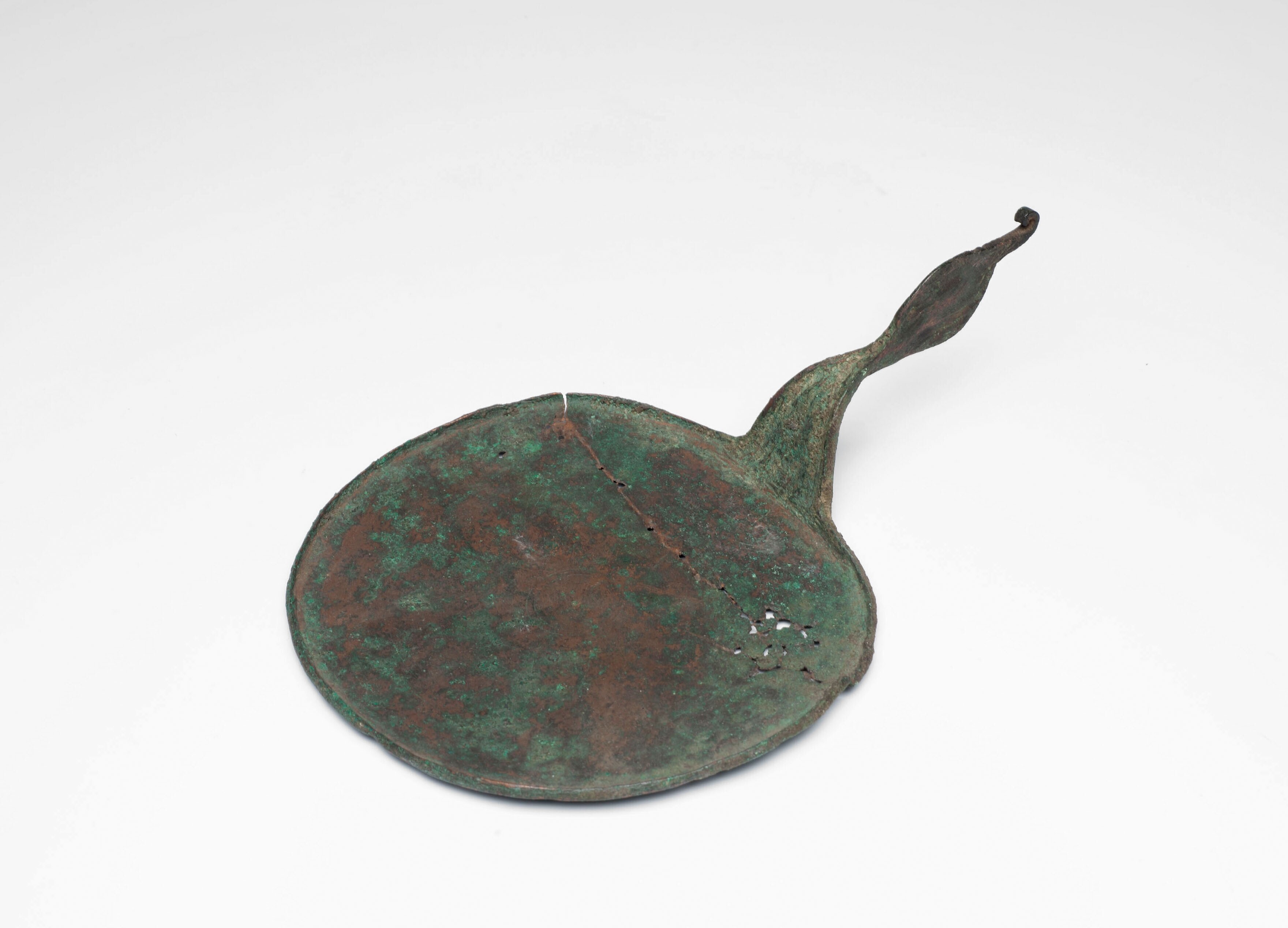 Beschadigde ronde bronzen spiegel zonder handvat