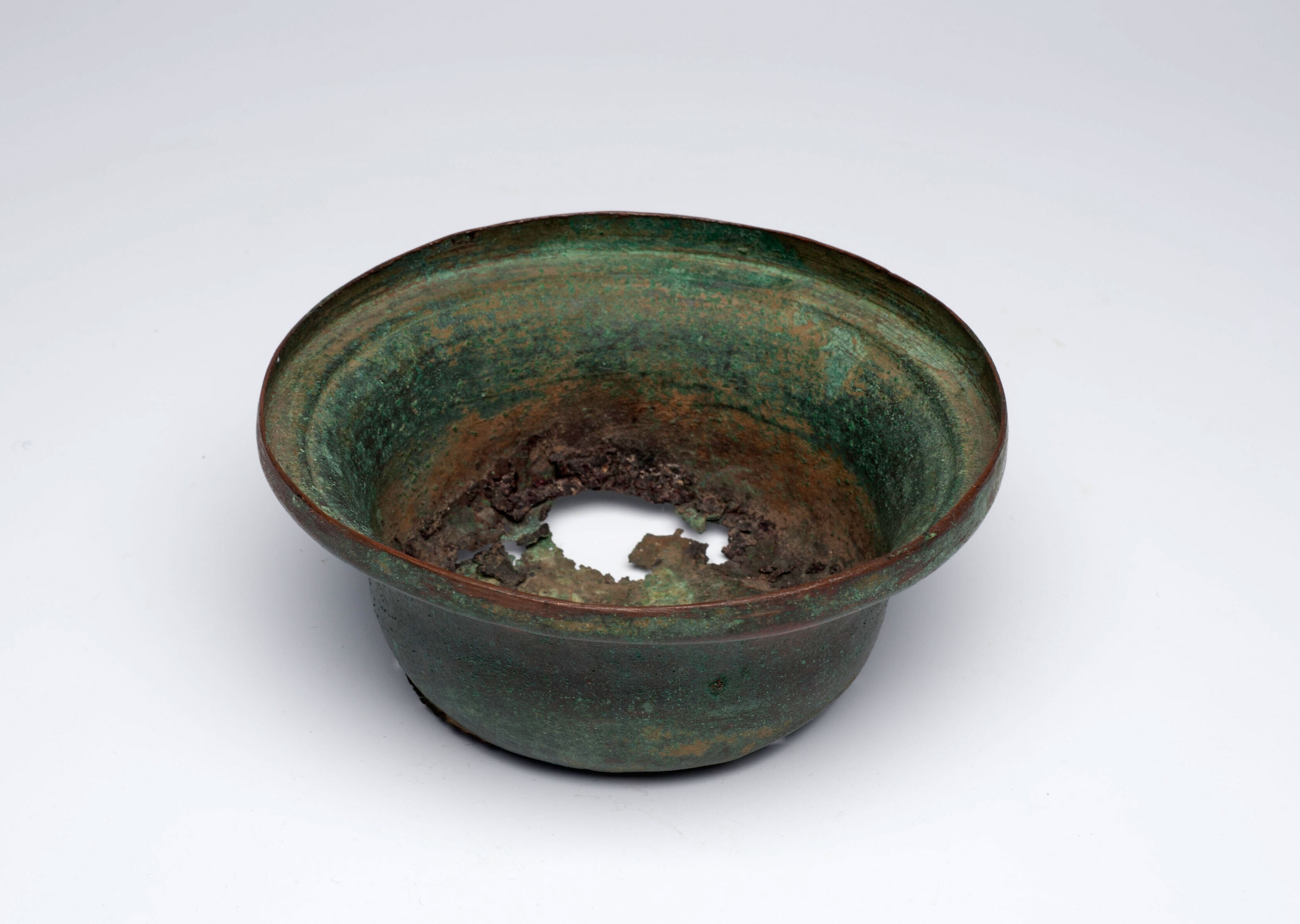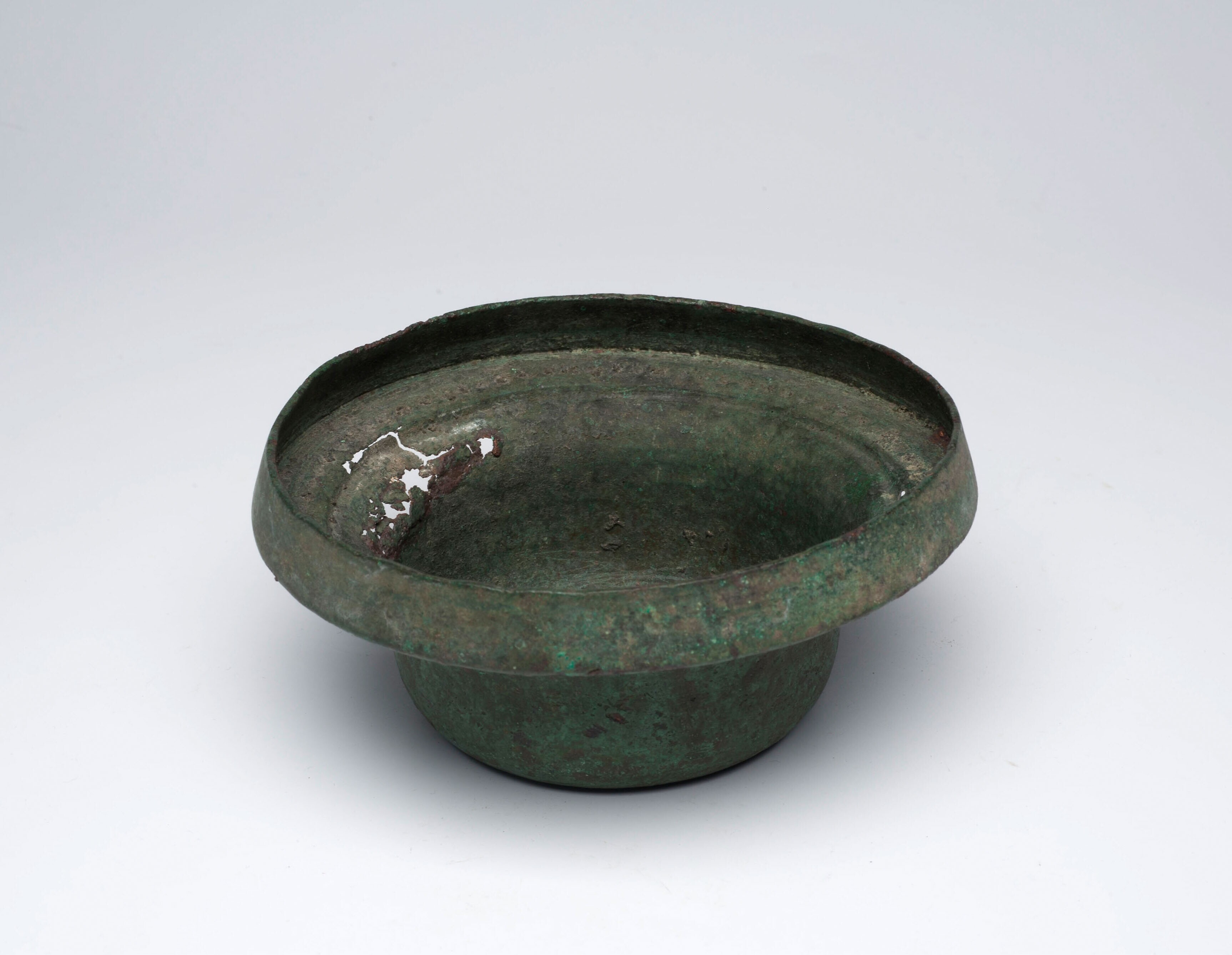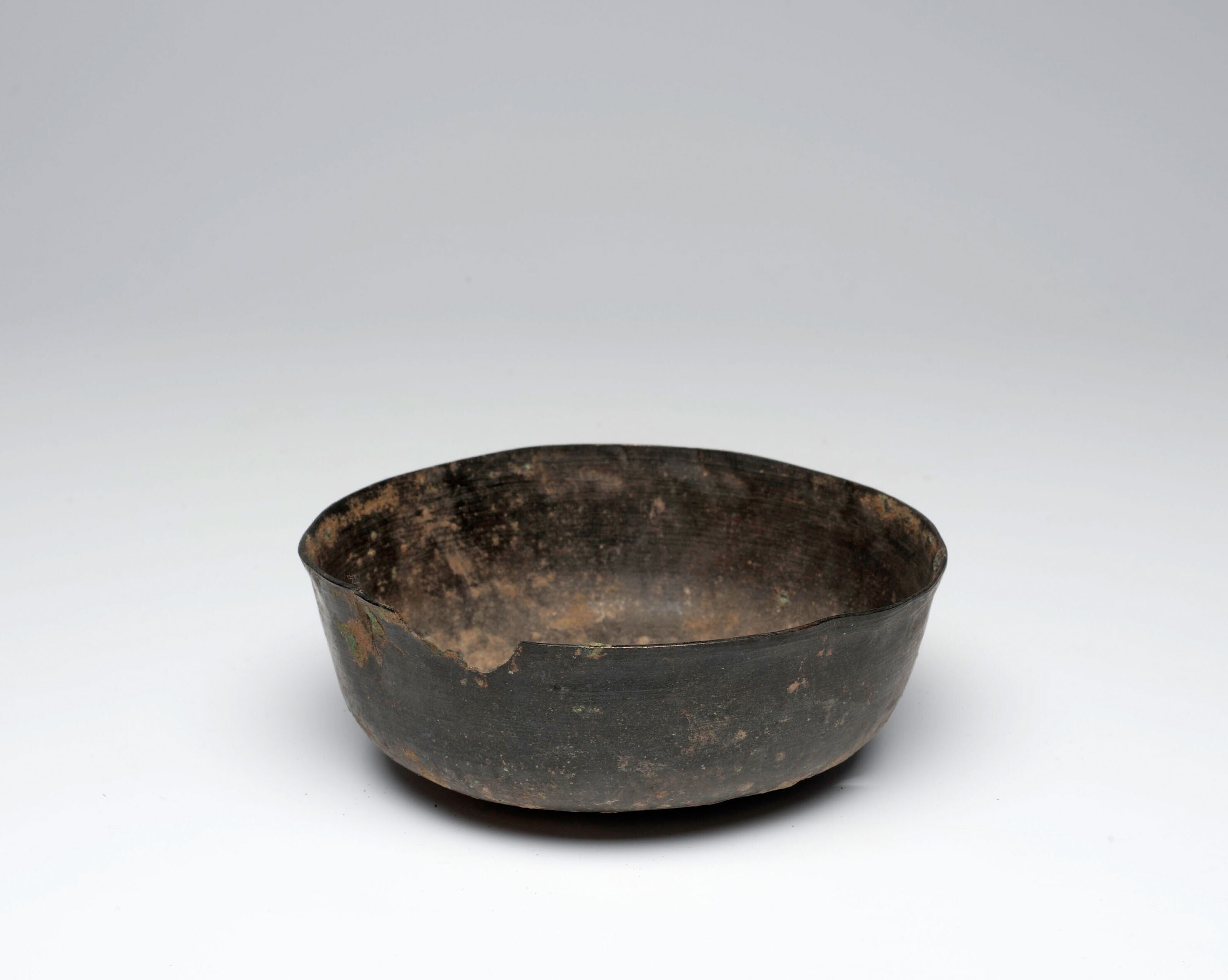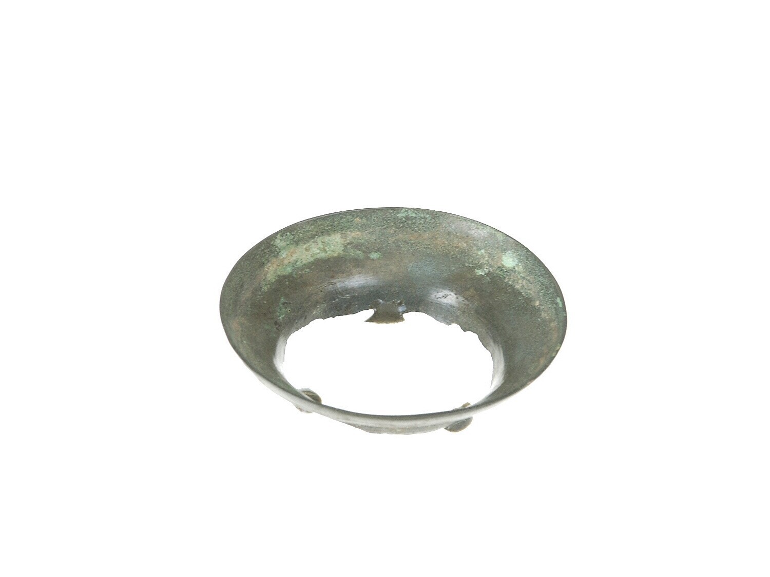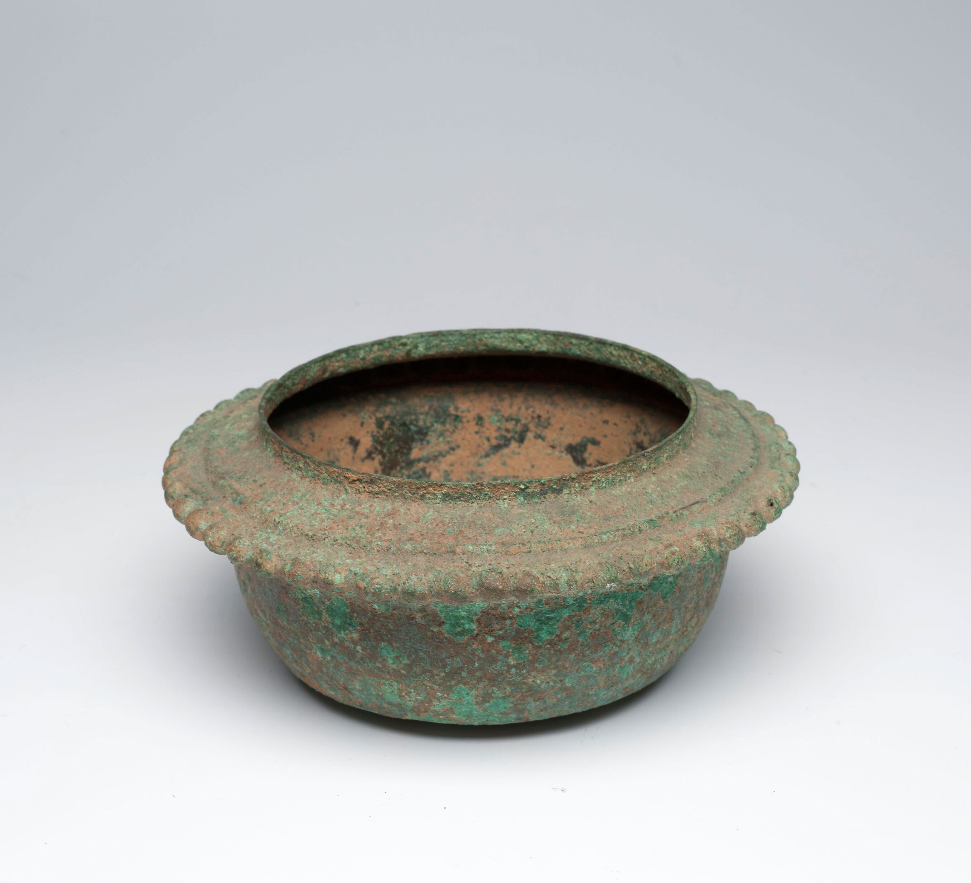 Bronzen bak met klaverbladvormige rand