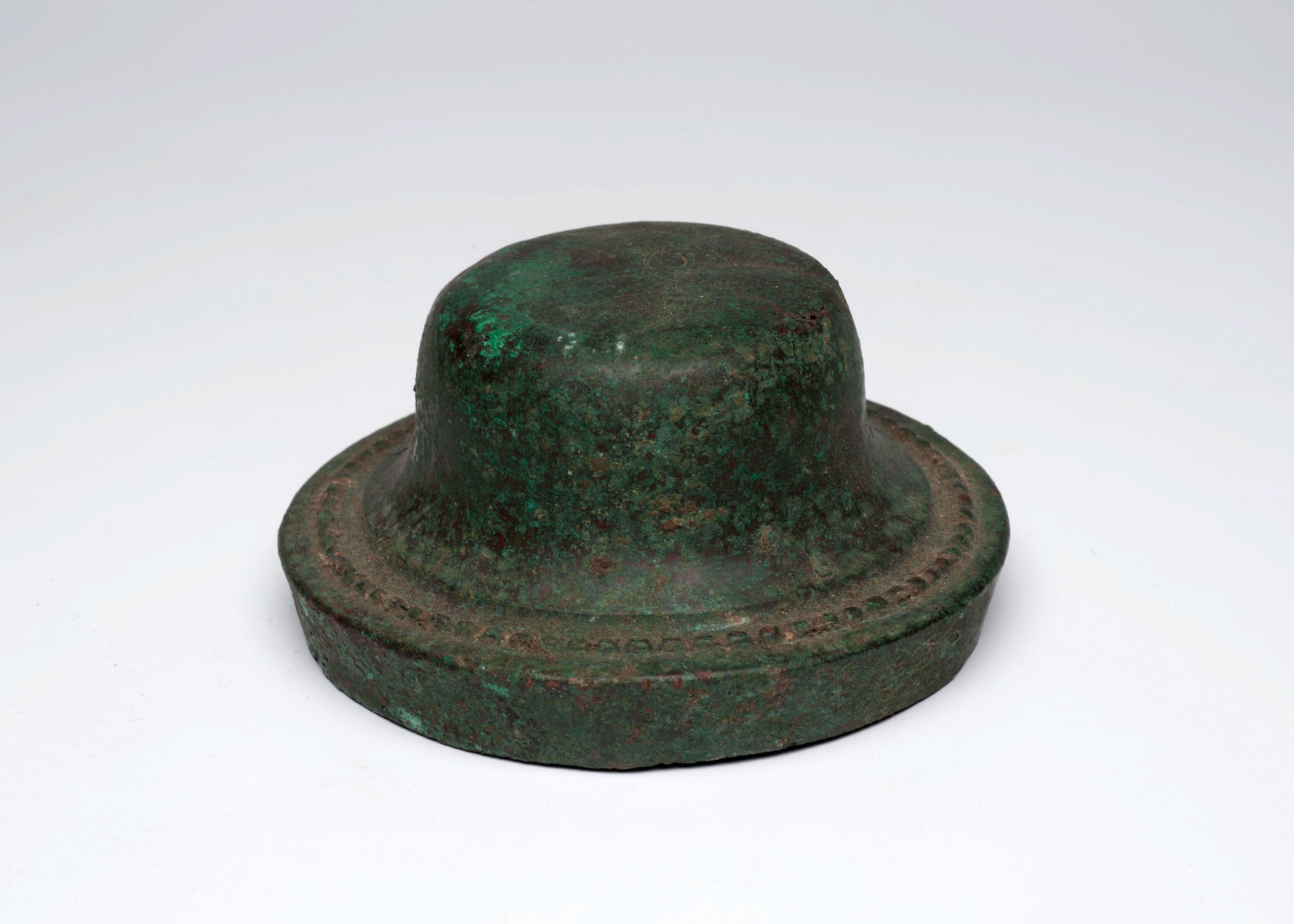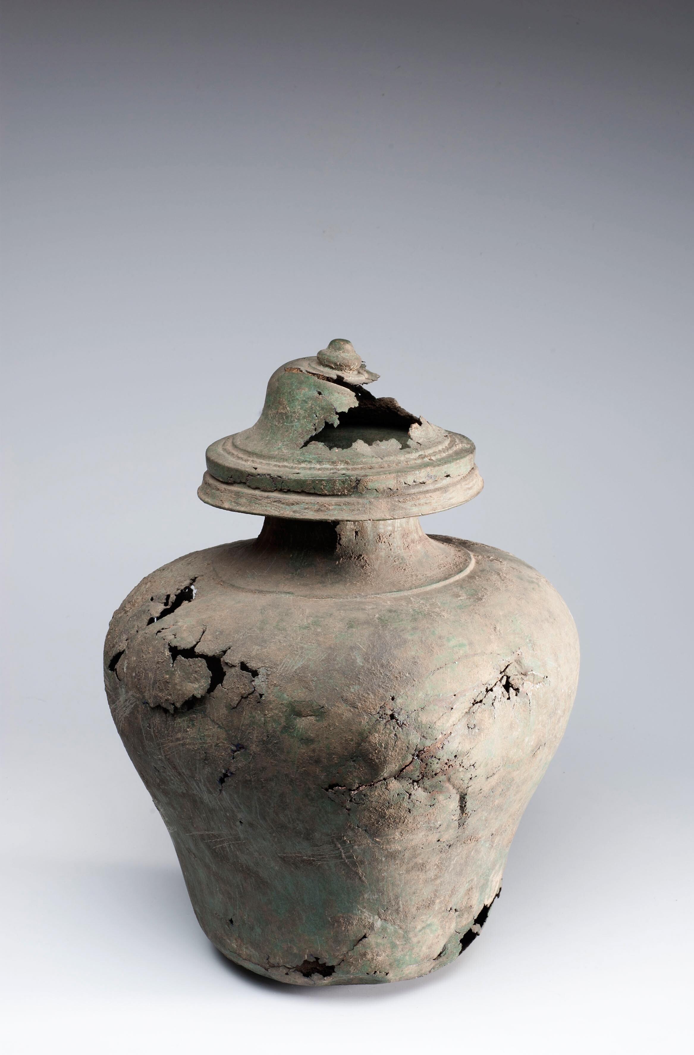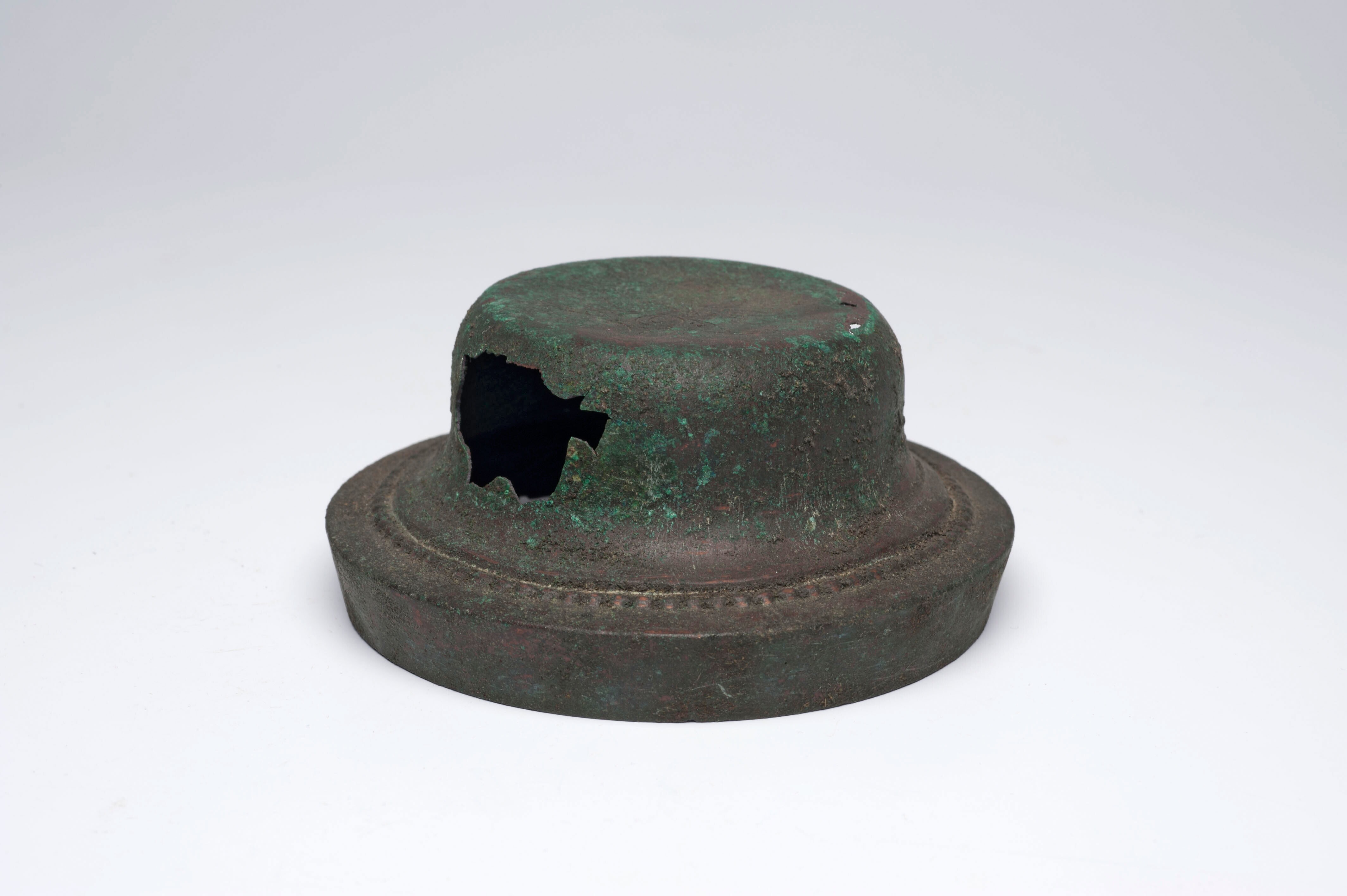 Bronzen deksel van een pot