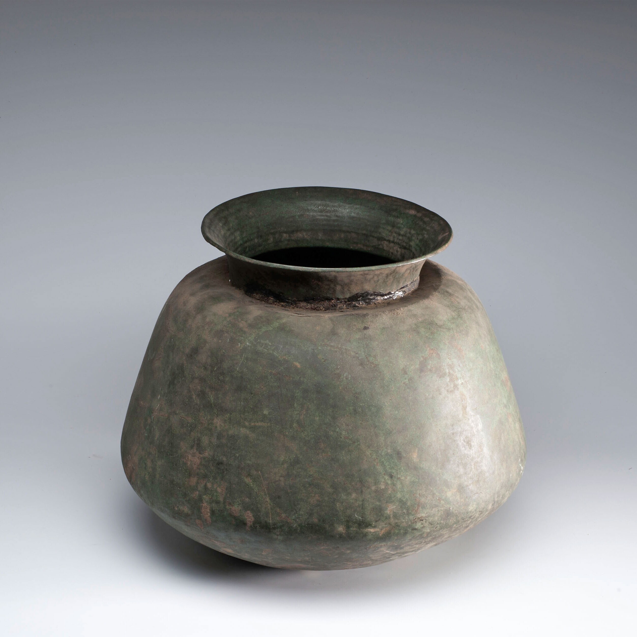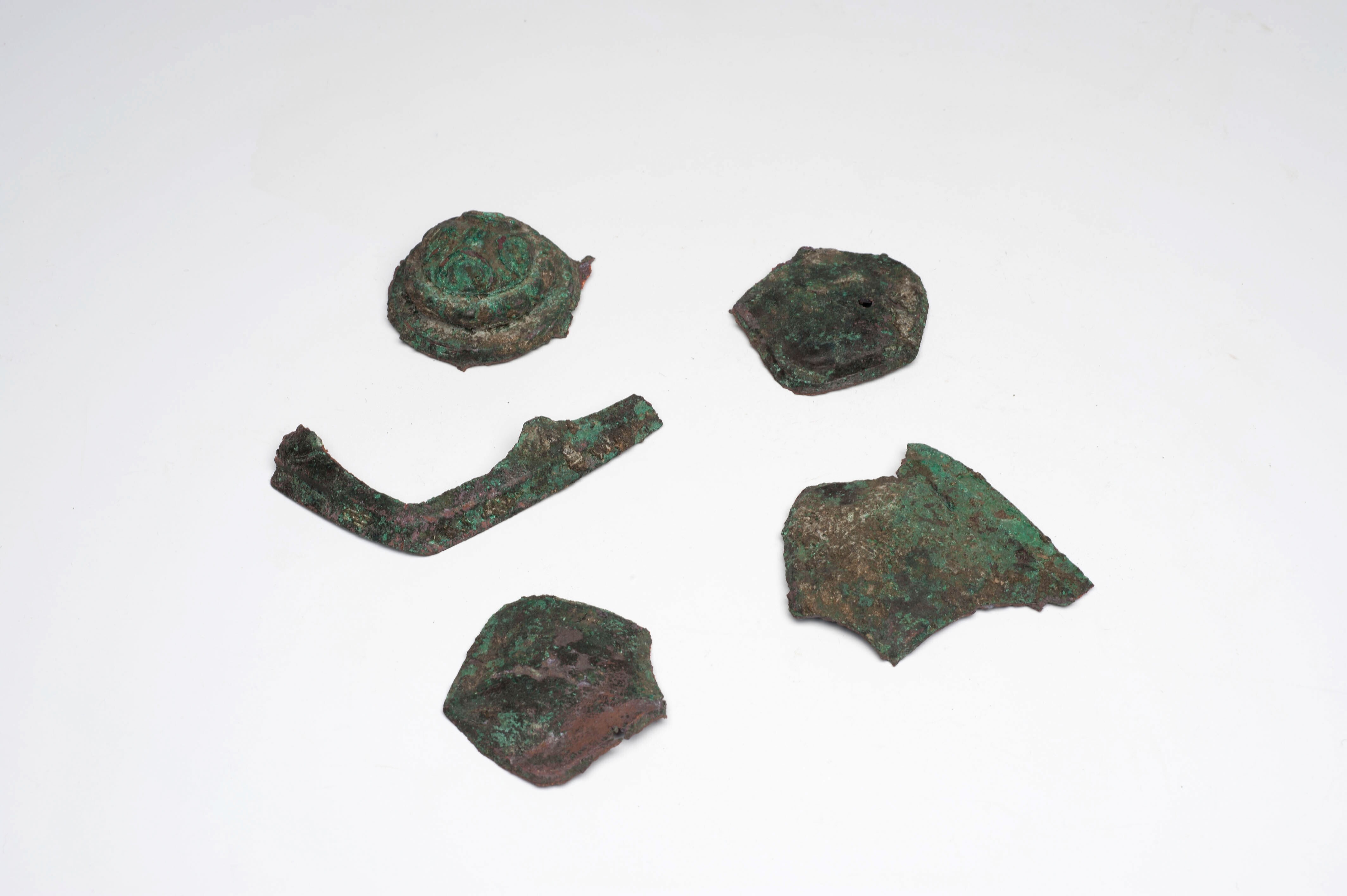 Vijf fragmenten van een koperen potje met een deksel