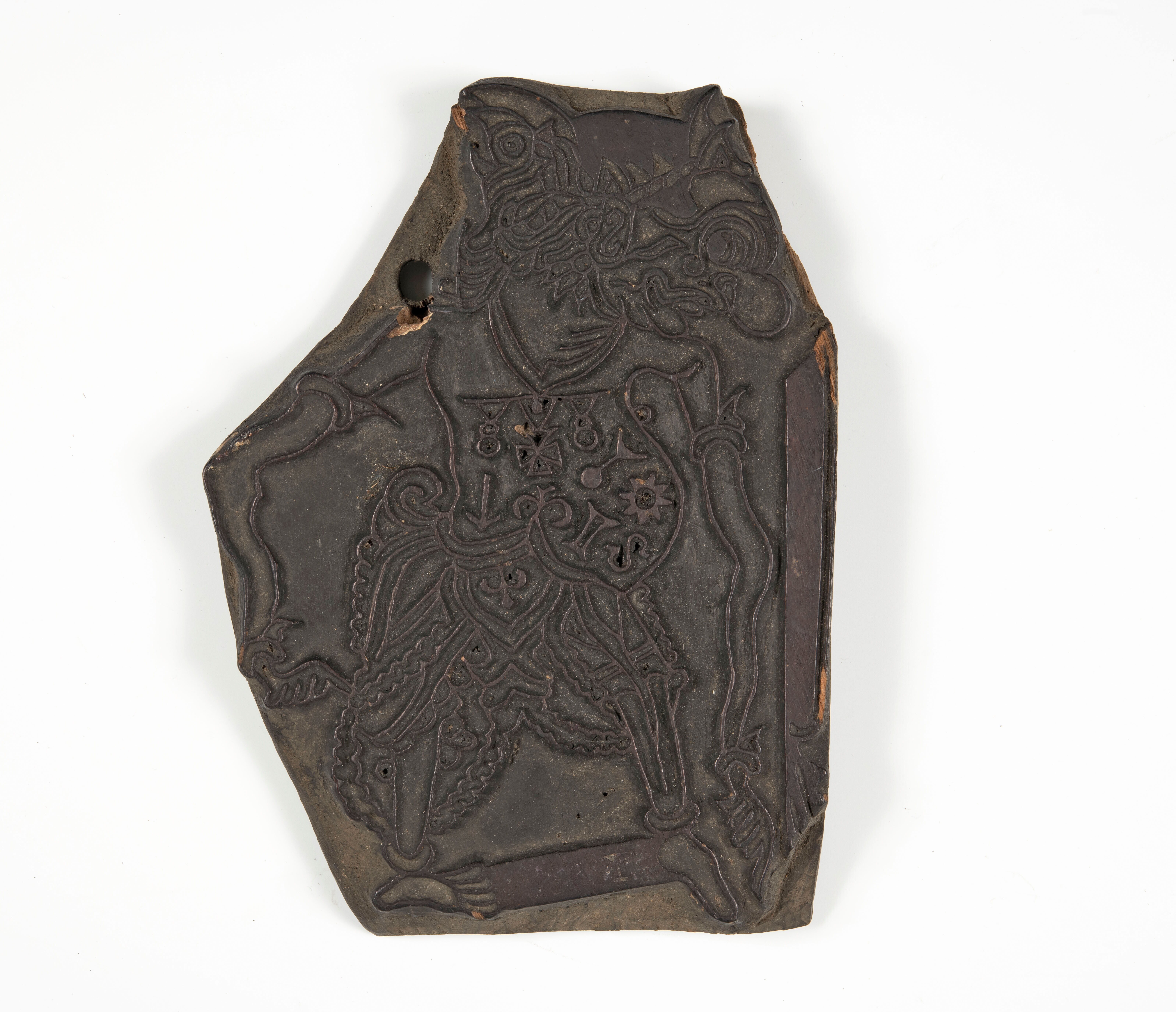 Houten cliché voor het drukken van een wajangfiguur ...
