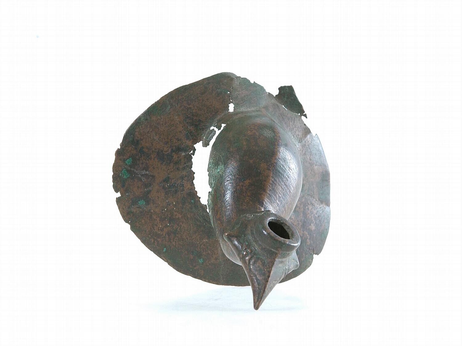 Koperen schenktuit in de vorm van een vogel