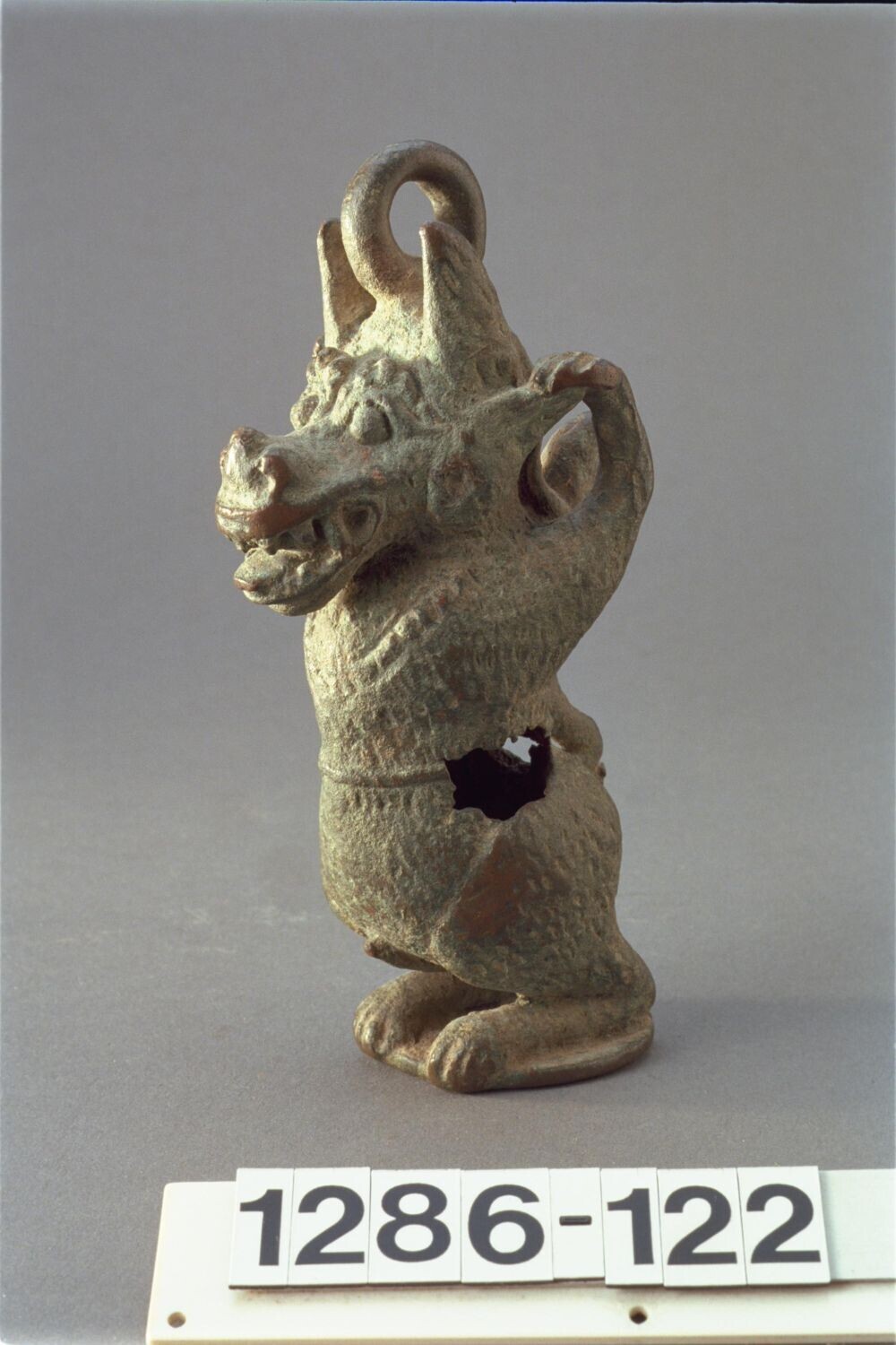 Koperen topstuk van een tempelbel in de vorm van een...