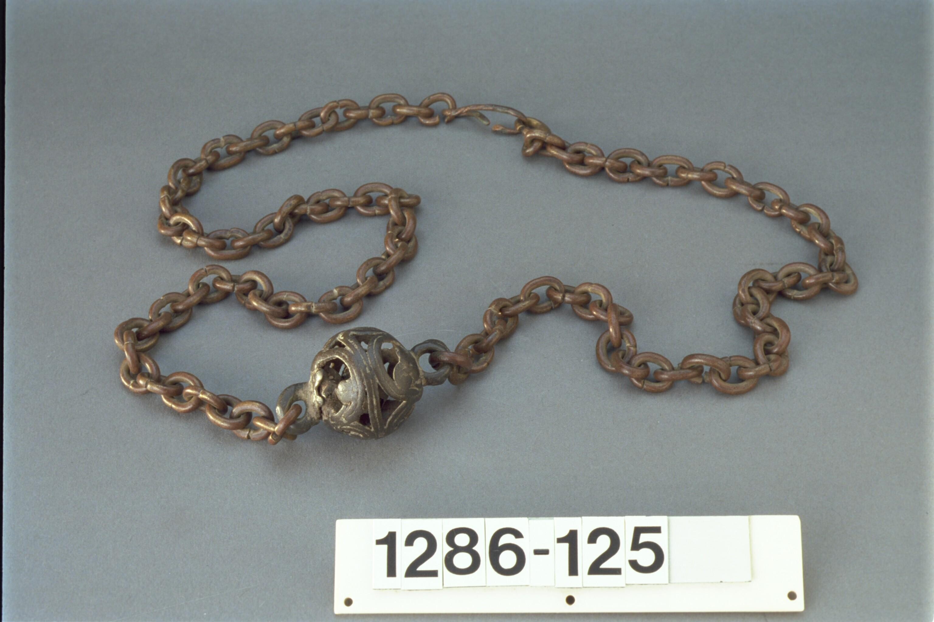 Bronzen ketting met een ajour bewerkte bel