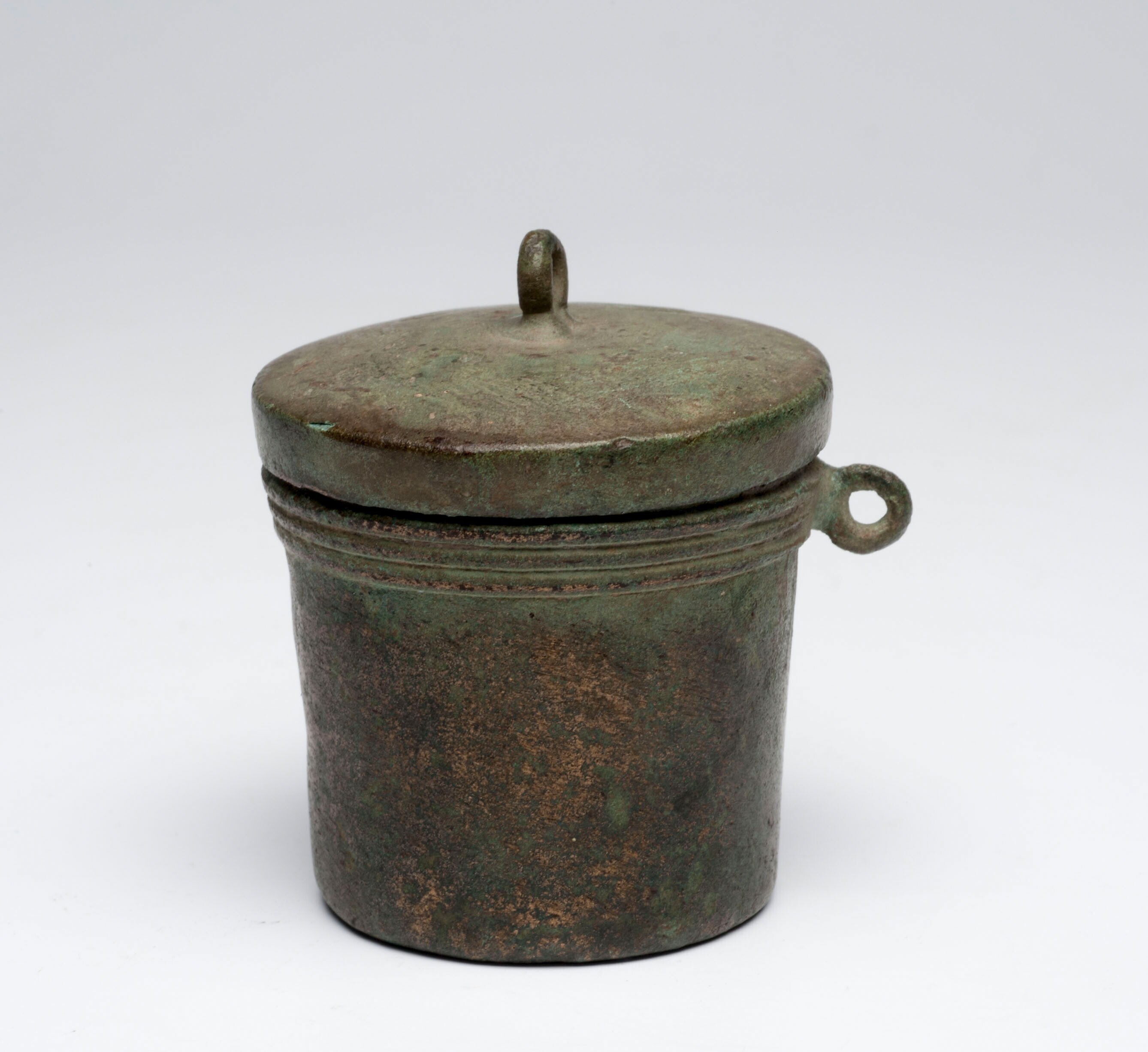 Bronzen kalkpot met bijbehorende deksel