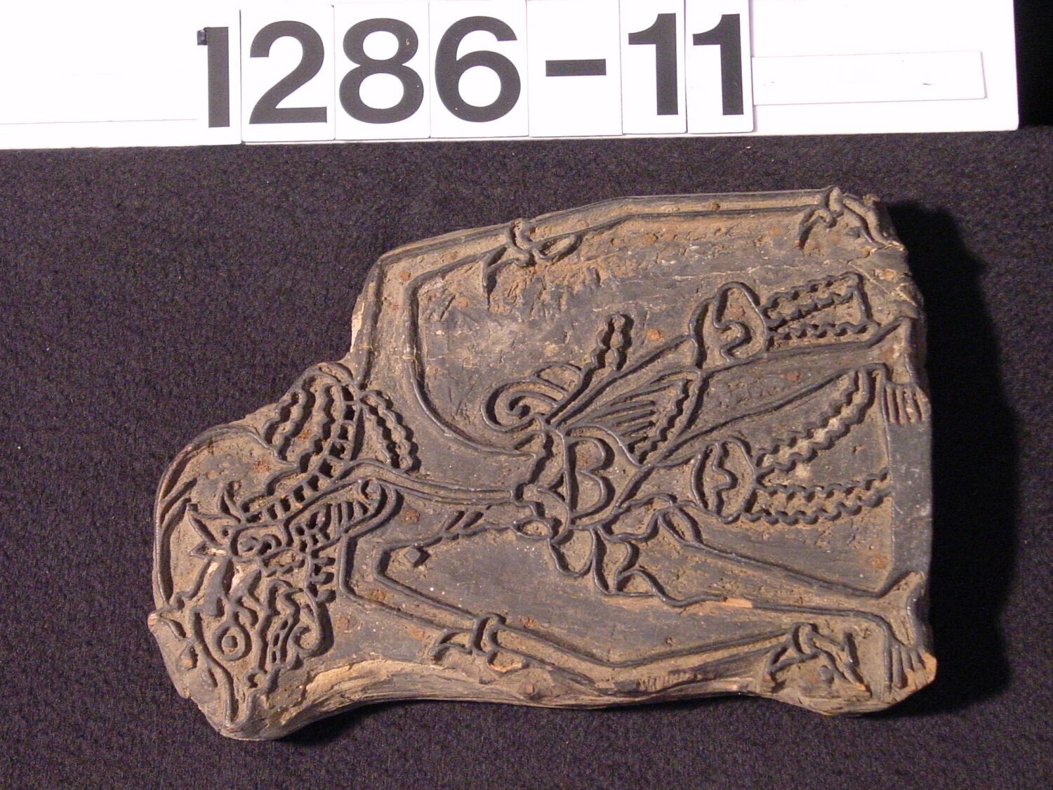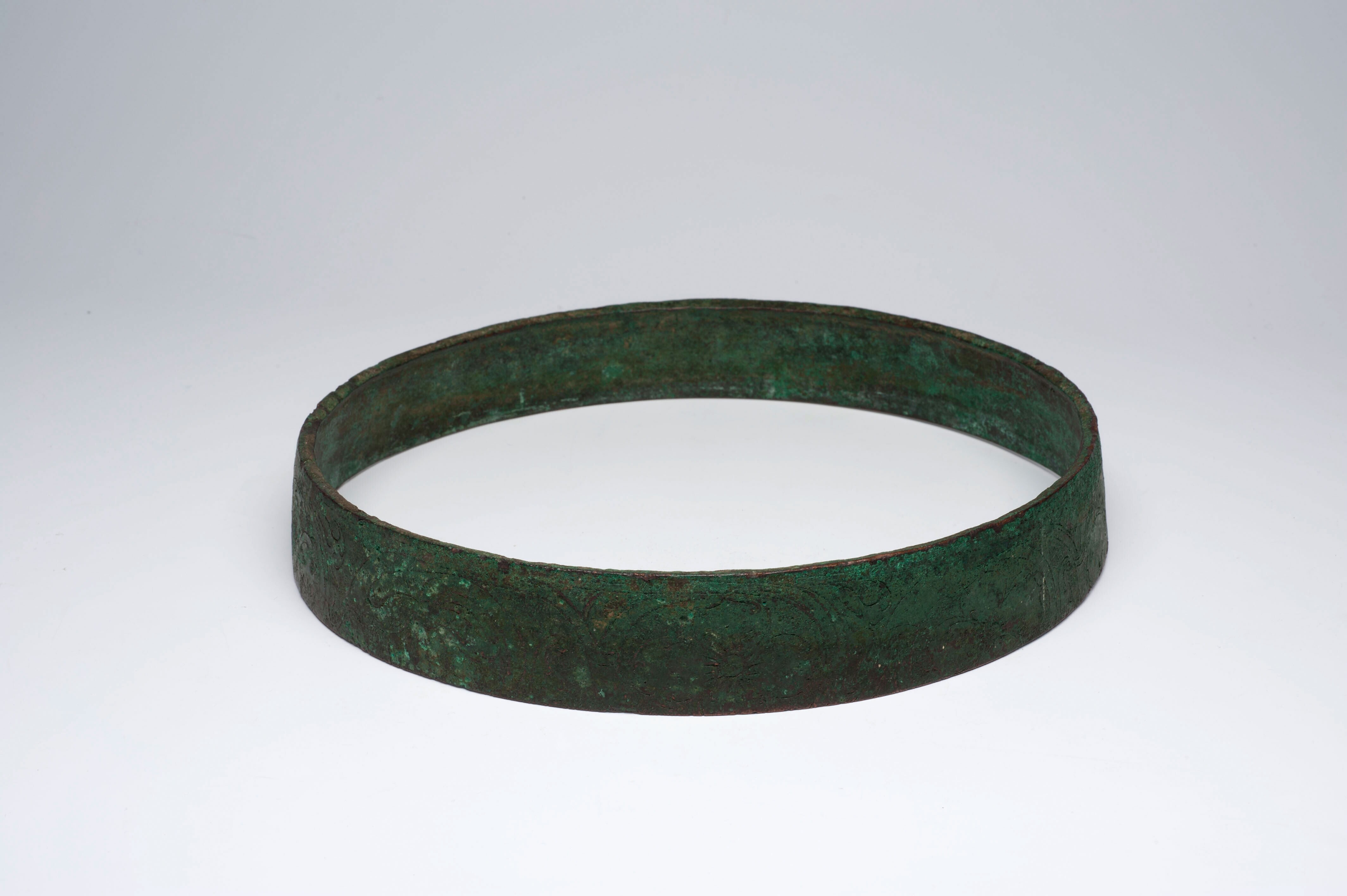 Versierde bronzen randfragment van een bak
