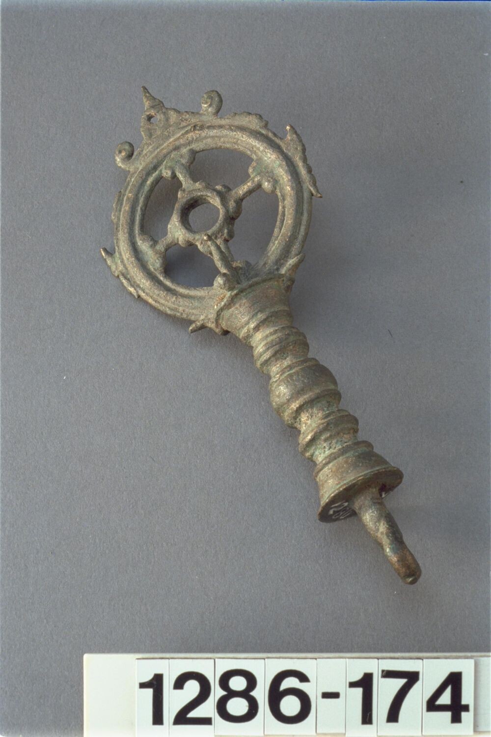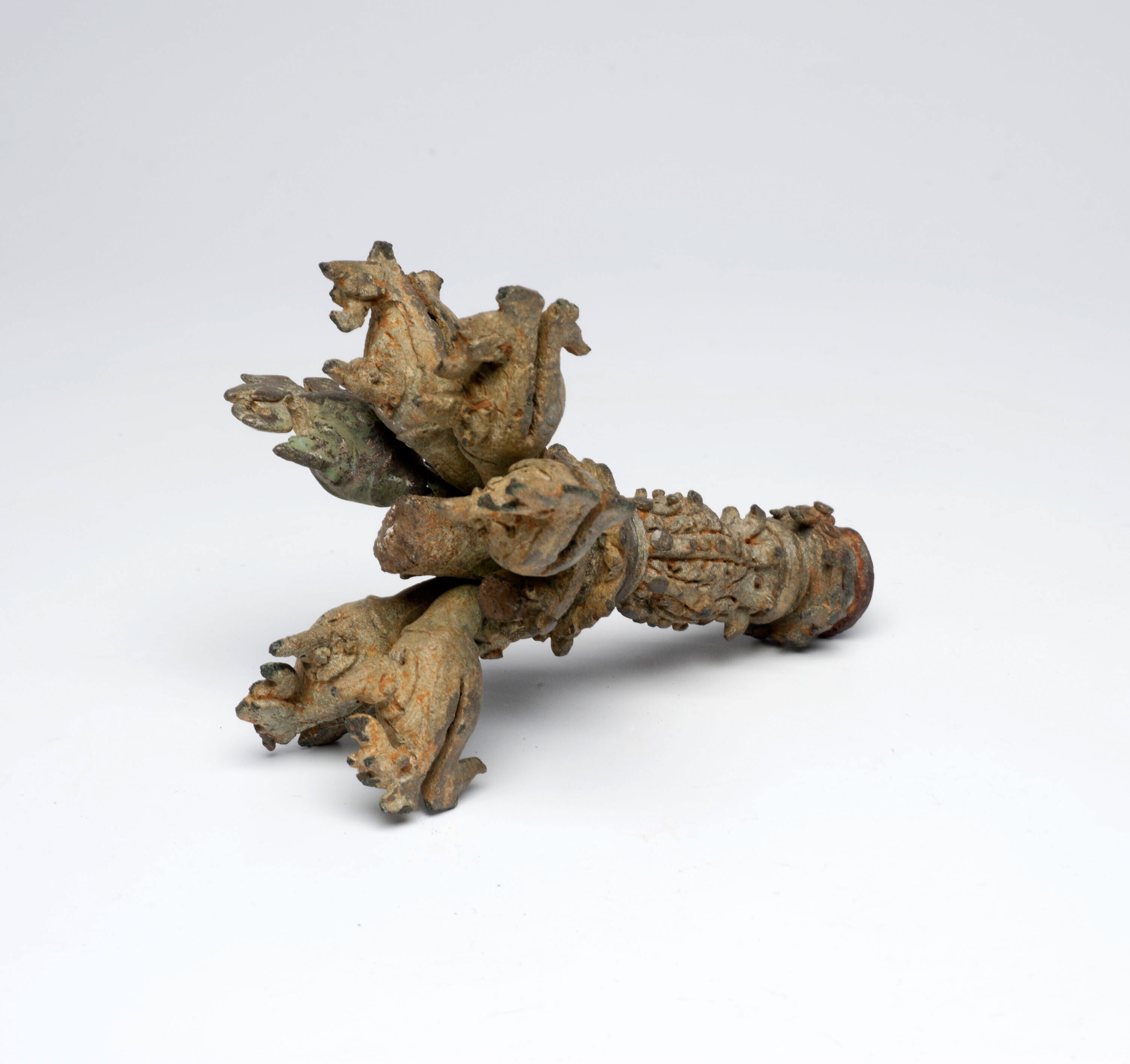 Bronzen topstuk van een ceremoniele bedelstaf of pri...