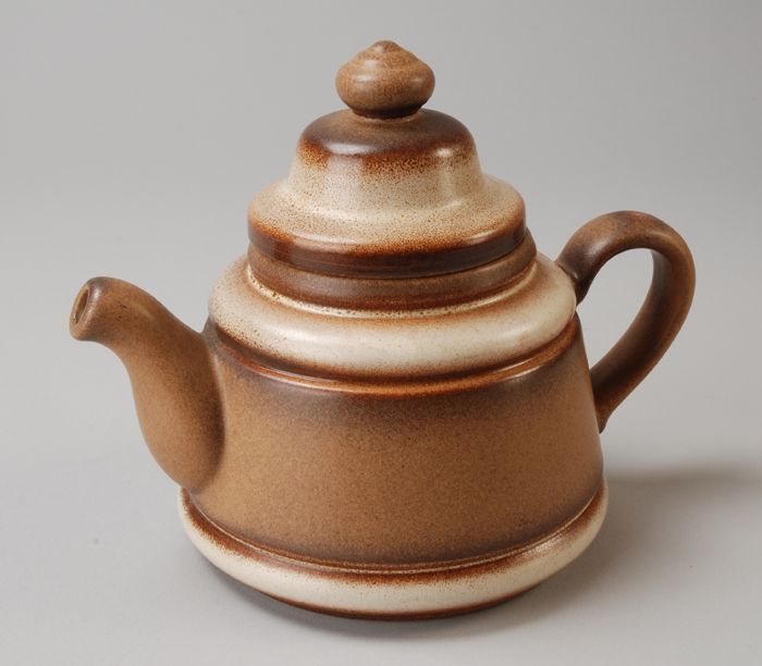 Licht- en donkerbruine theepot (A) met deksel (B)