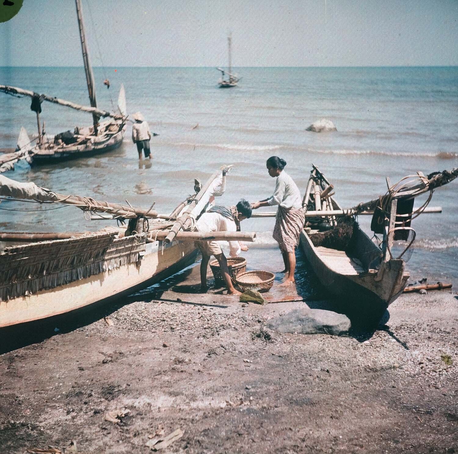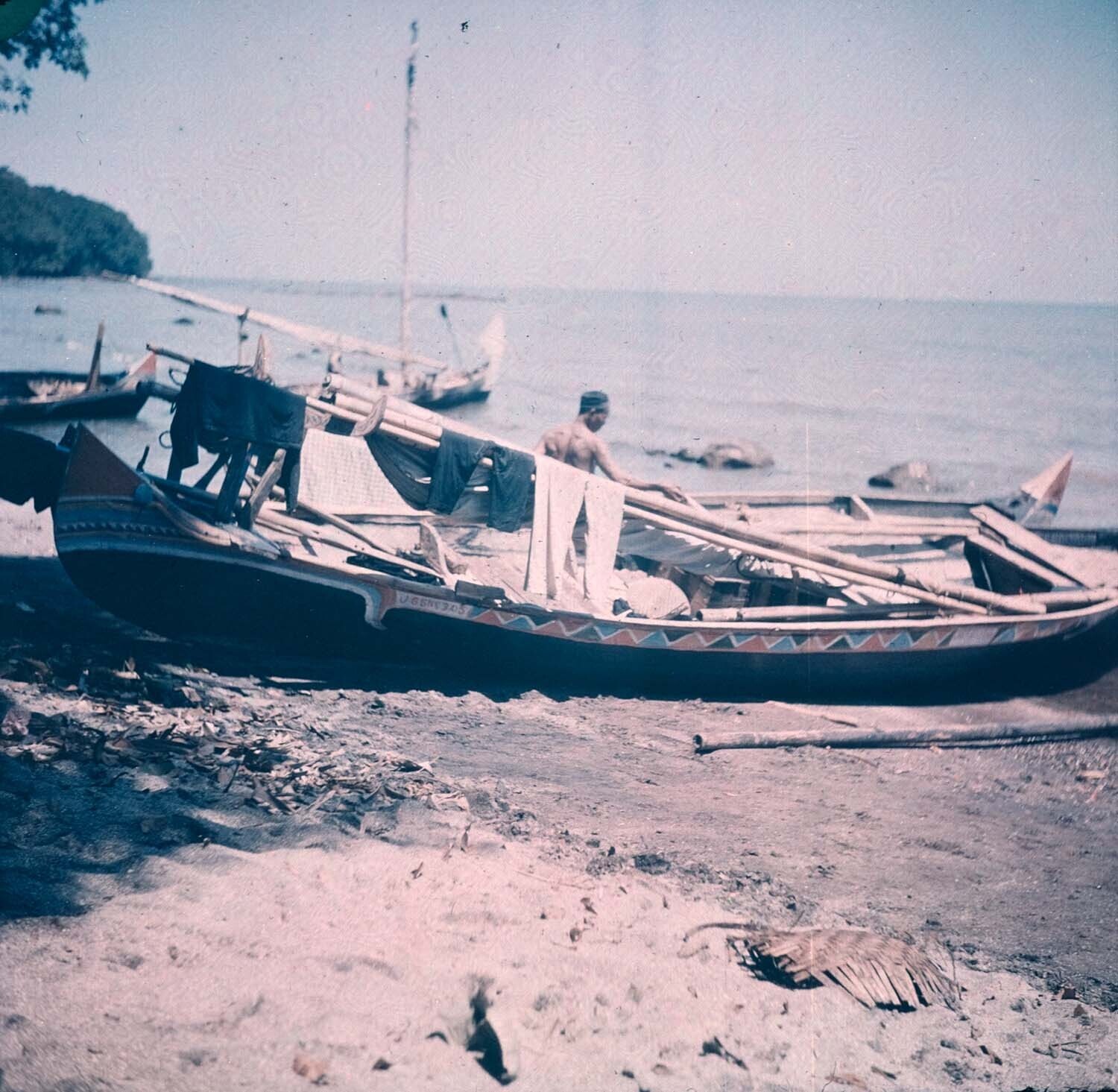 Prauwen langs het strand
