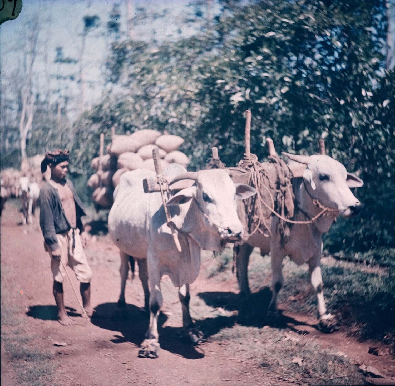 Een man met een span ossen