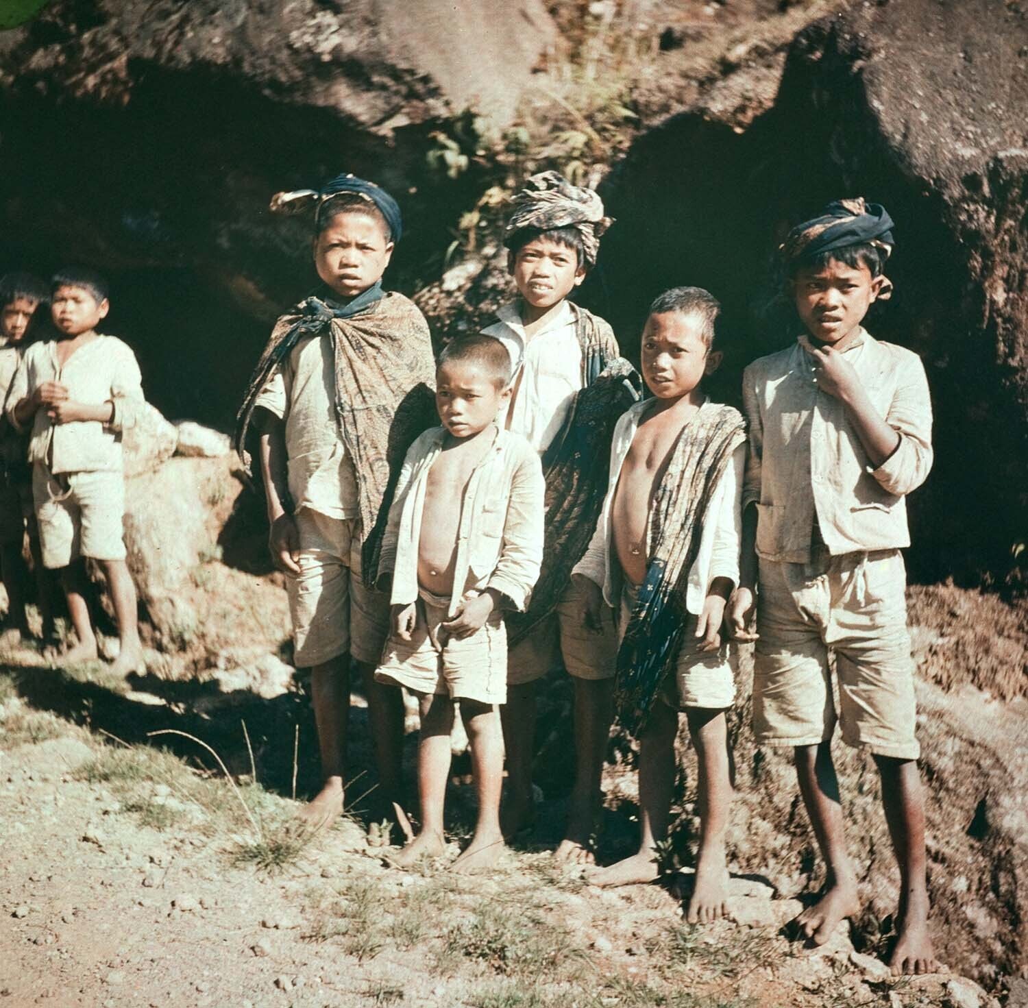 Children beside a road towards the Dieng Plateau