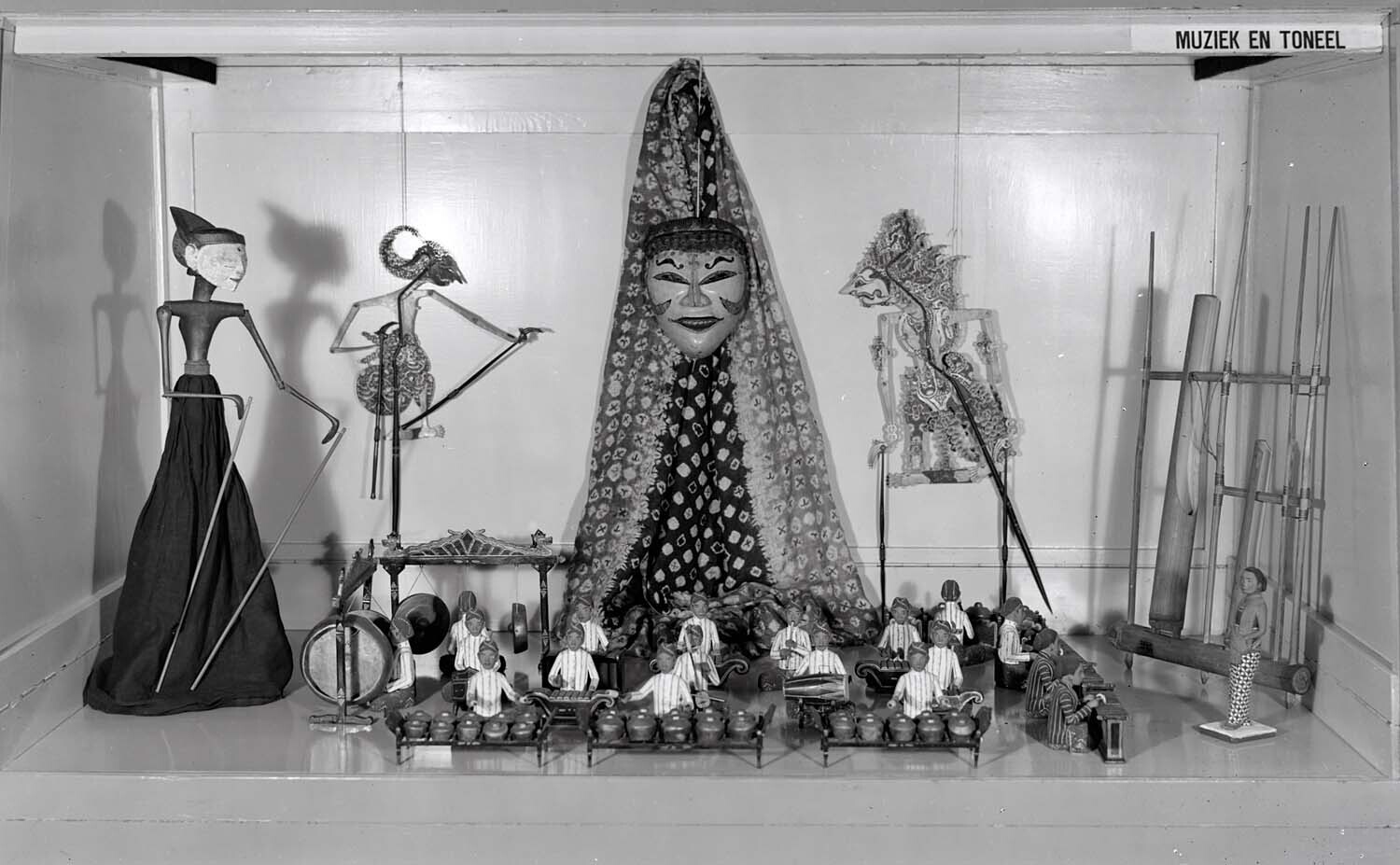 Vitrine gewijd aan muziek en toneel op de tentoonste...